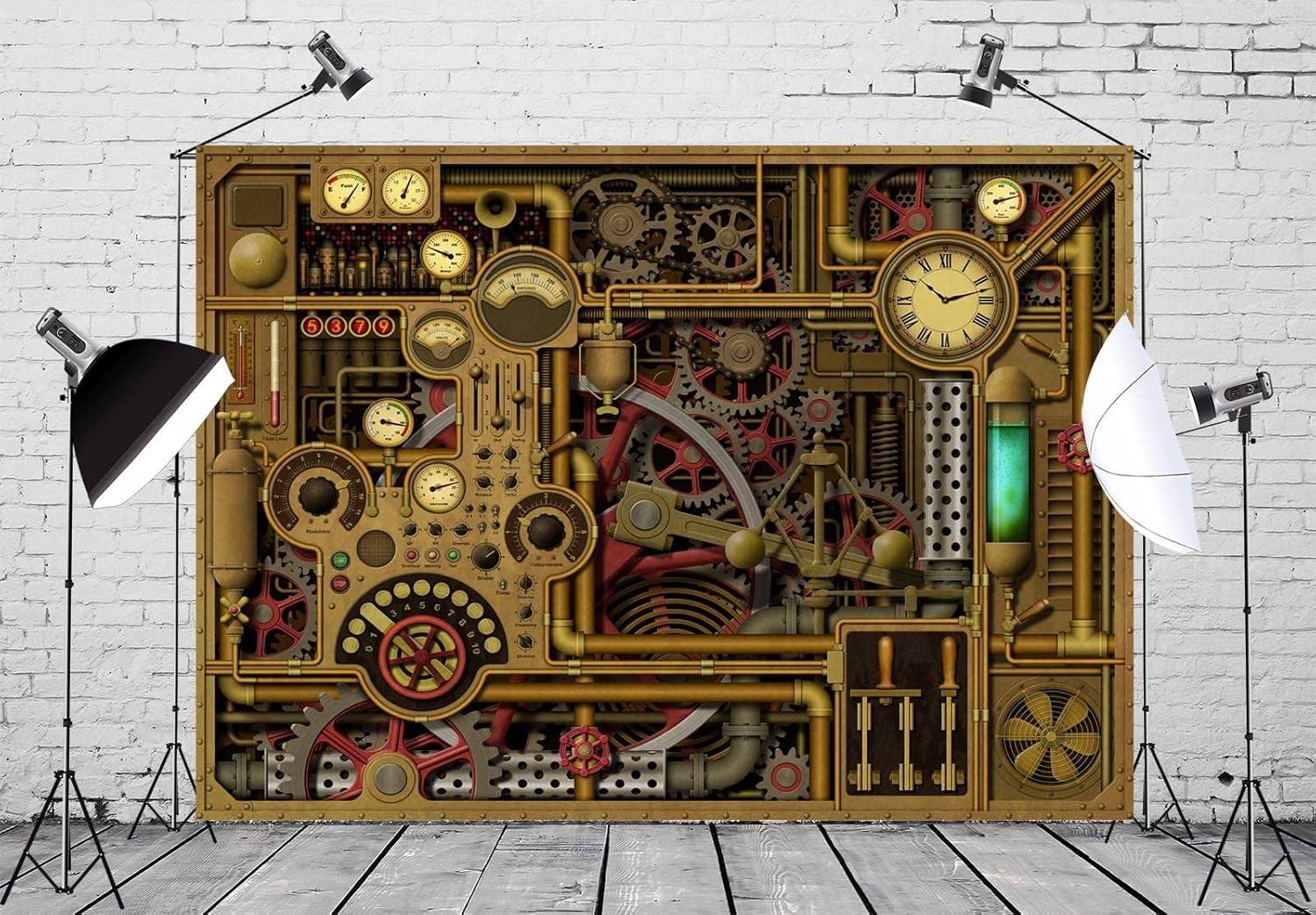 BELECO 7x5ft Fabric Antique Steampunk Backdrop Retro Old Metal 7x5FT, A12553