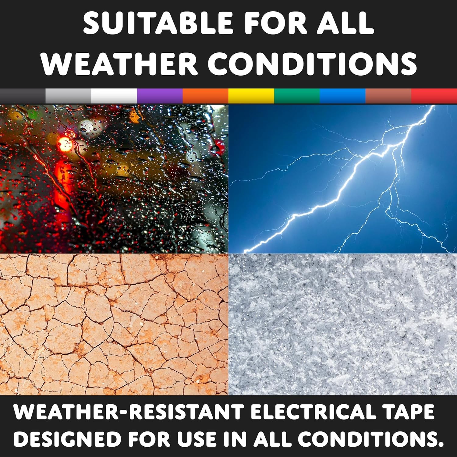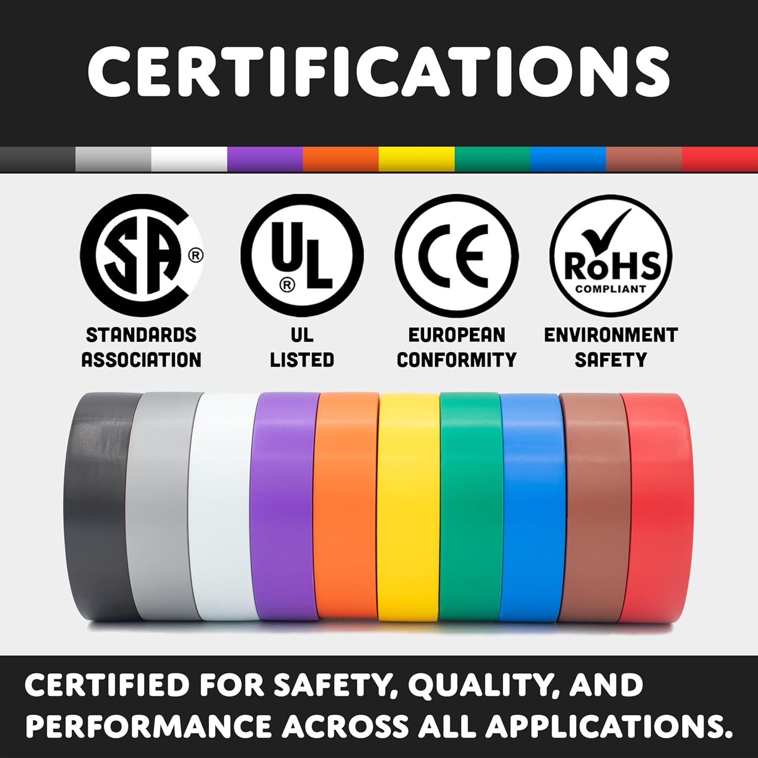 TradeGear Electrical Tape 10PK Assorted Matte Rainbow Colors Multicolored