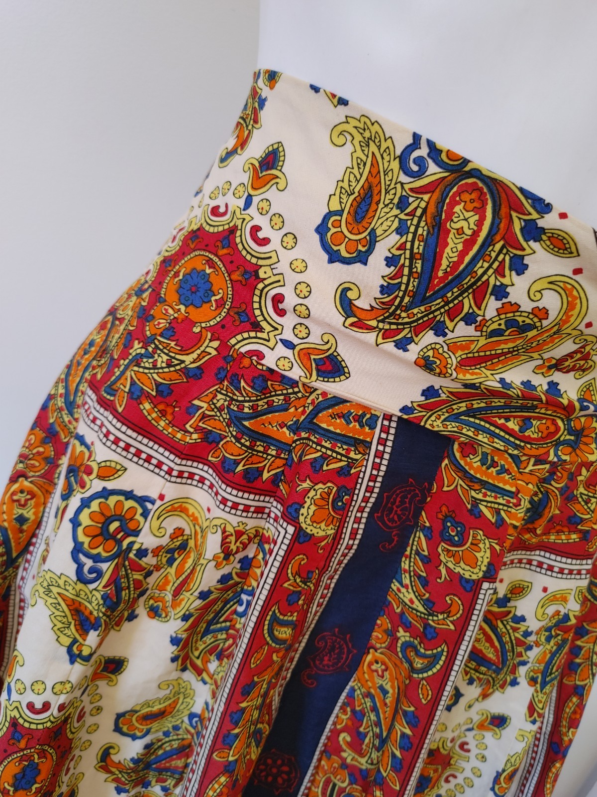 Elverhoj Vintage 60s 70s Folk Hippie Boho Paisley Printed pleated Maxi Skirt M