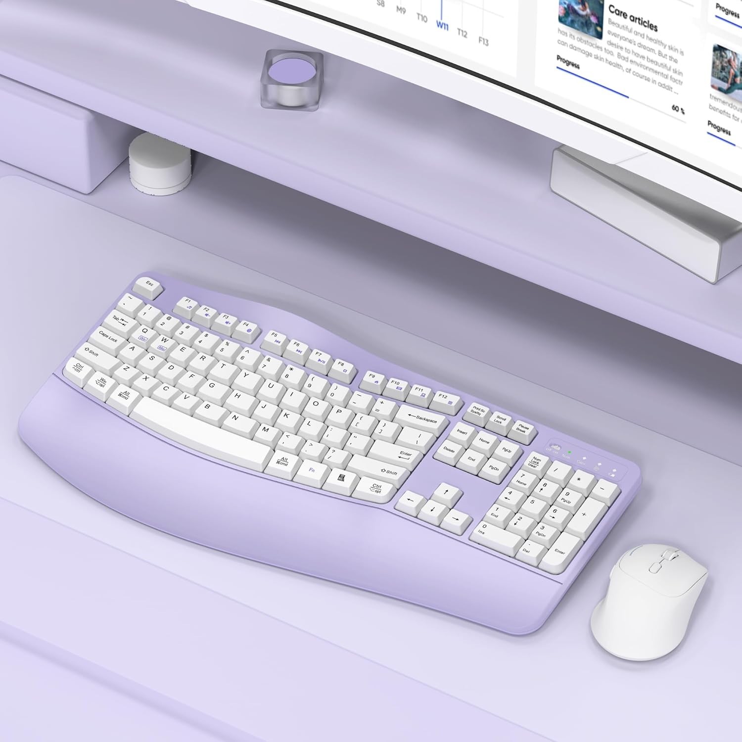 Ergonomic Wireless Keyboard Silent Mouse Combo Wave Keys Wrist Rest Plug play