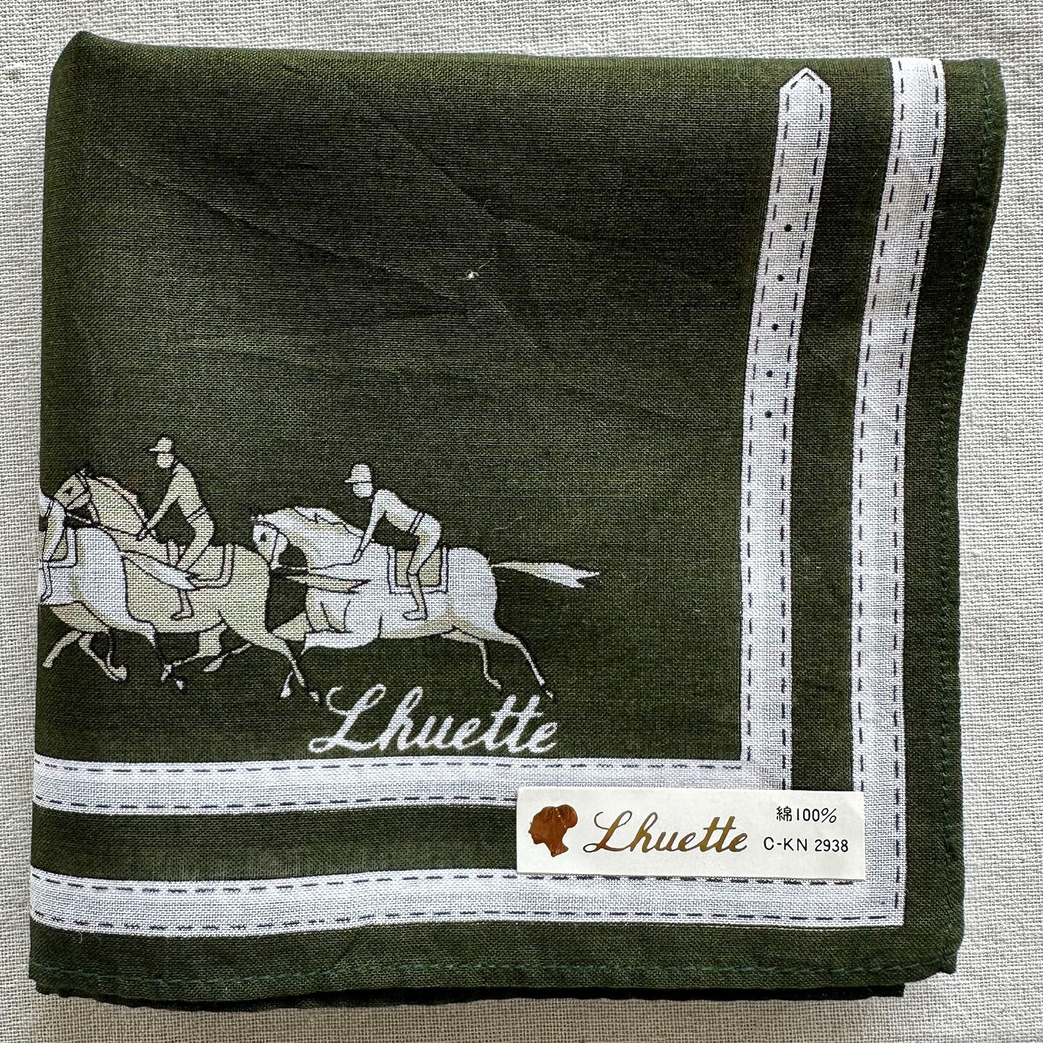 Vintage Mens Handkerchief Plain Green Cotton Border Equestrian Pocket Square 17