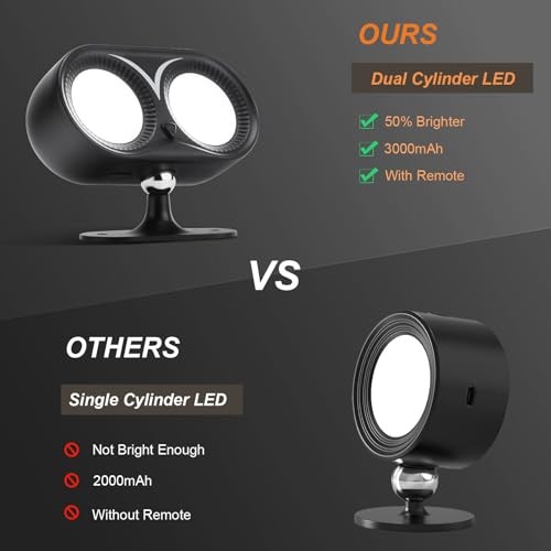 Dual Cylinder LED Wall Light, Super Bright Wireless Lamp, USB Port, 3 Color