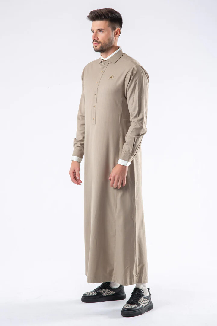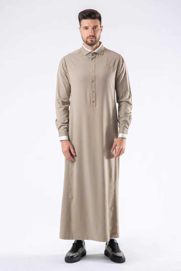 R24 LAWUNG Al-Ameer Adult Men's Thobe Modern Design Arabian Jubbah Dark Ivory