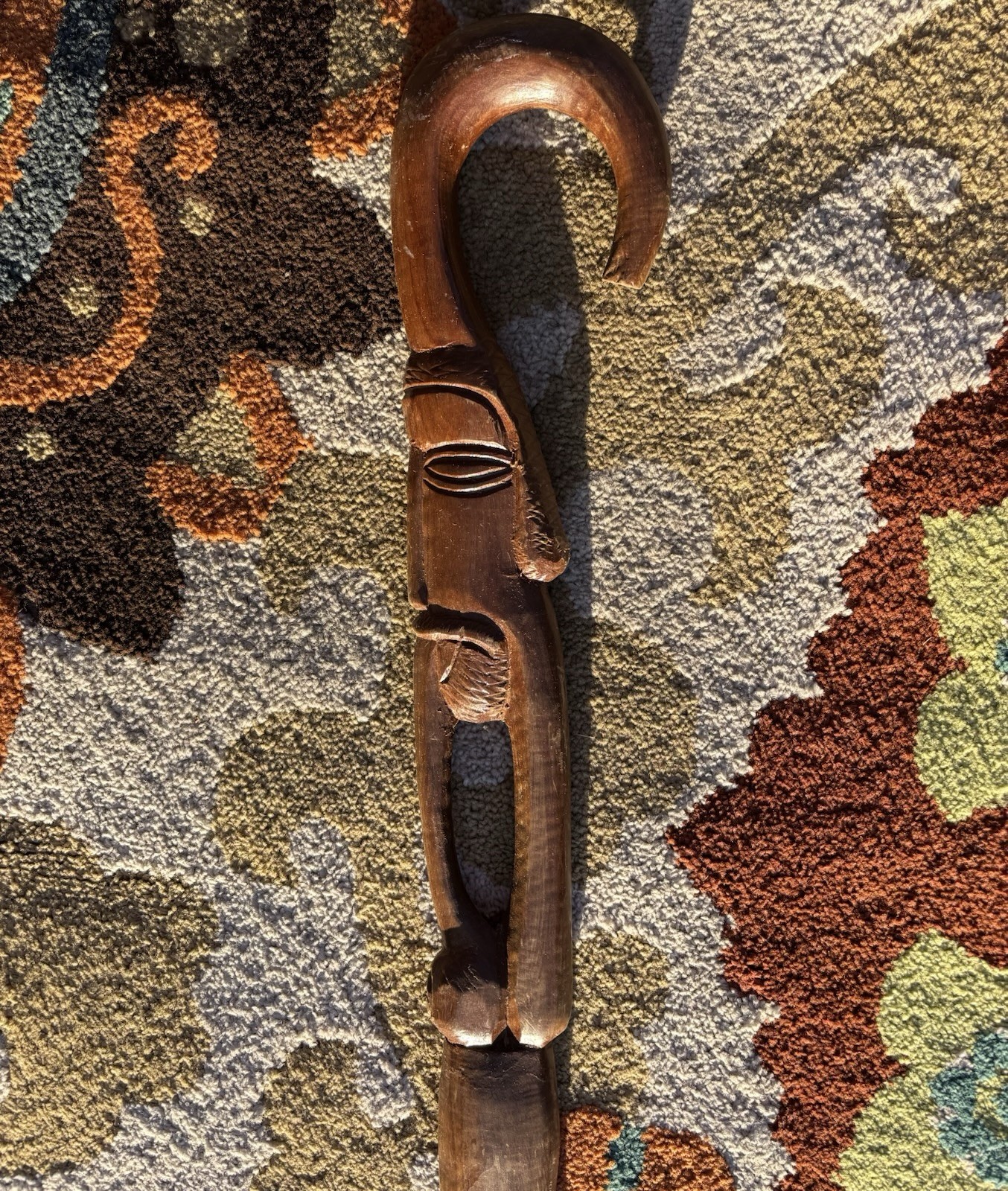 Vintage Hand-Carved Wooden Walking Stick 36 Tribal Folk Art Cane Staff Decor