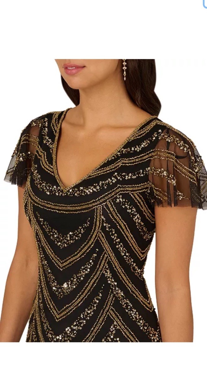 как выглядит Adrianna Papell Womens V-Neck Beaded Mesh Dress фото