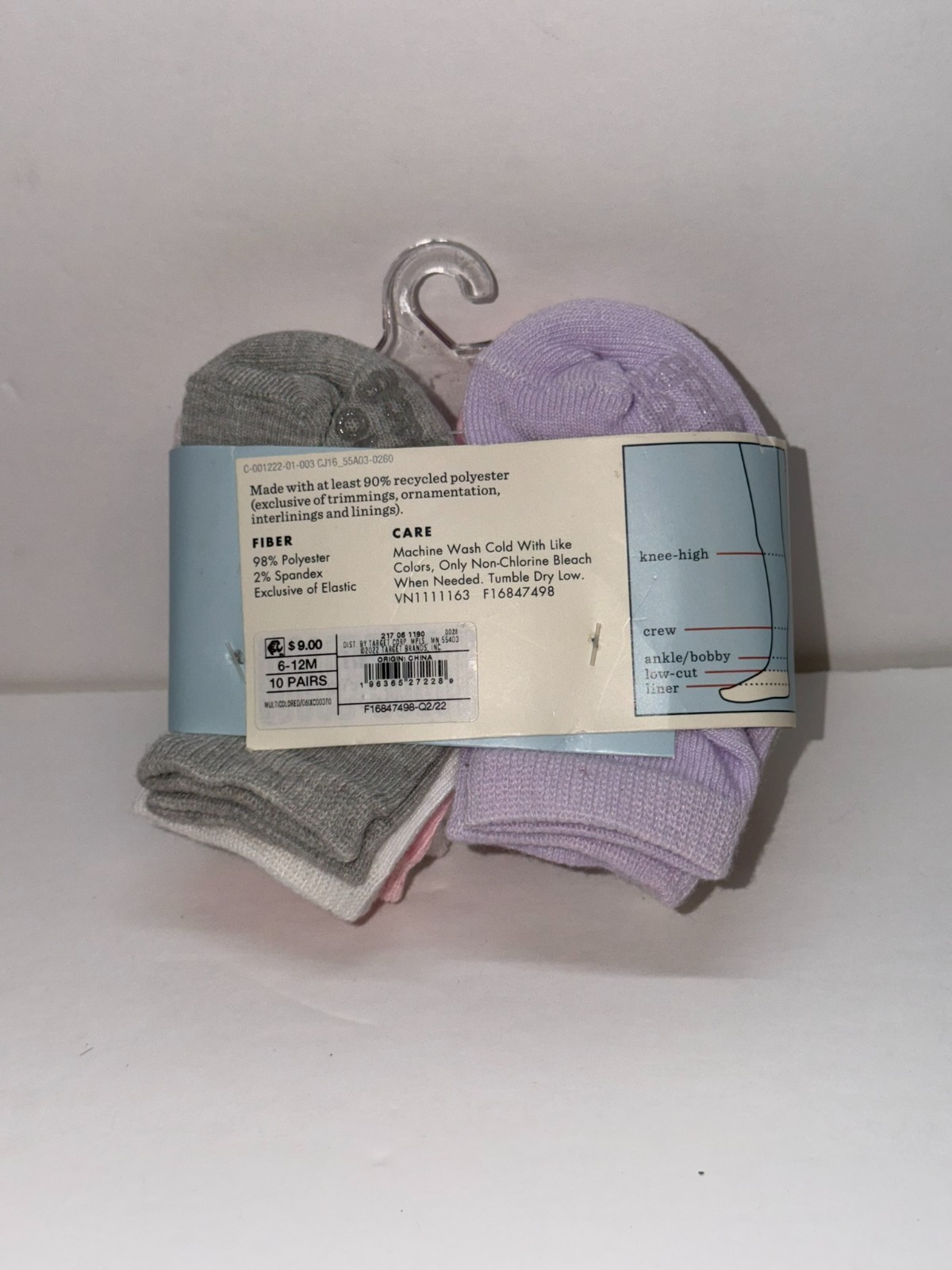 Cat Jack Baby Girl's 10 Pair Low Cut Socks Size:6-12 Months