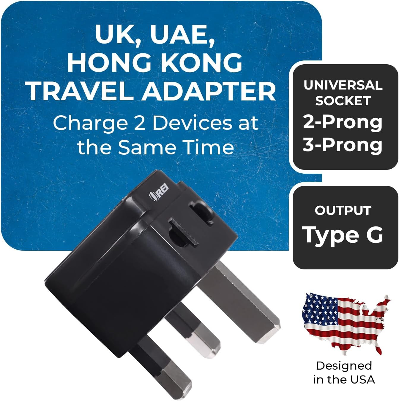 USA to UK Travel Plug Adapter - Type G Travel Adapter Compatible with UK, UAE, H
