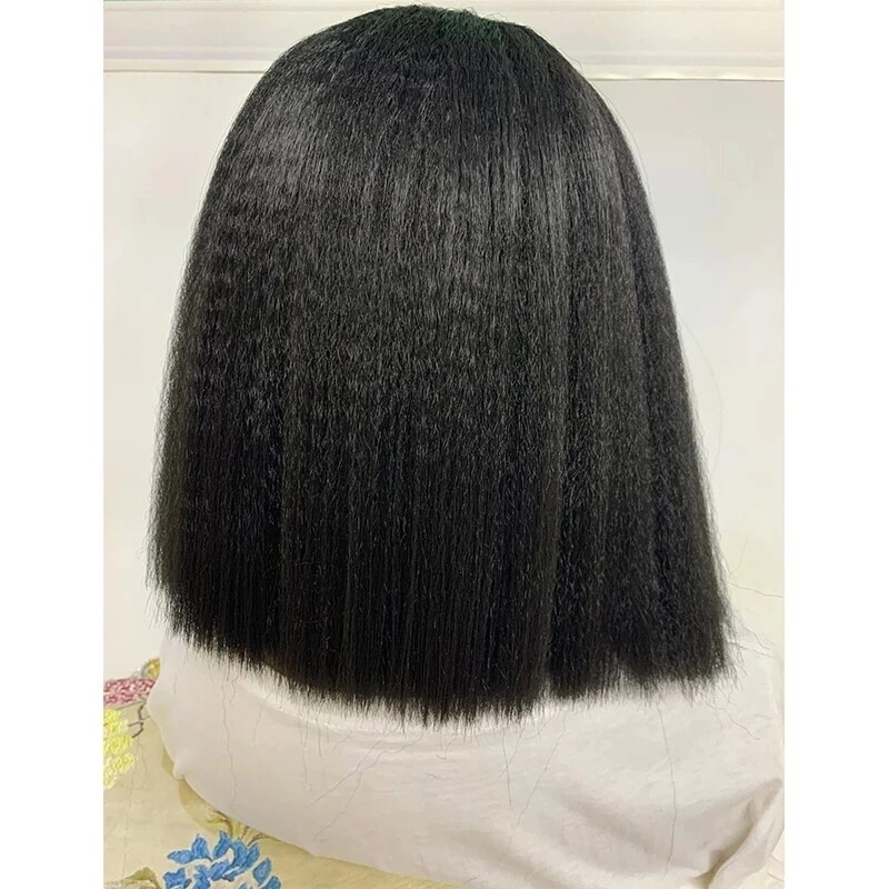 Short Yaki Straight Black 4X4 Lace Front Remy 100 Human Hair Wig Glueless Wigs
