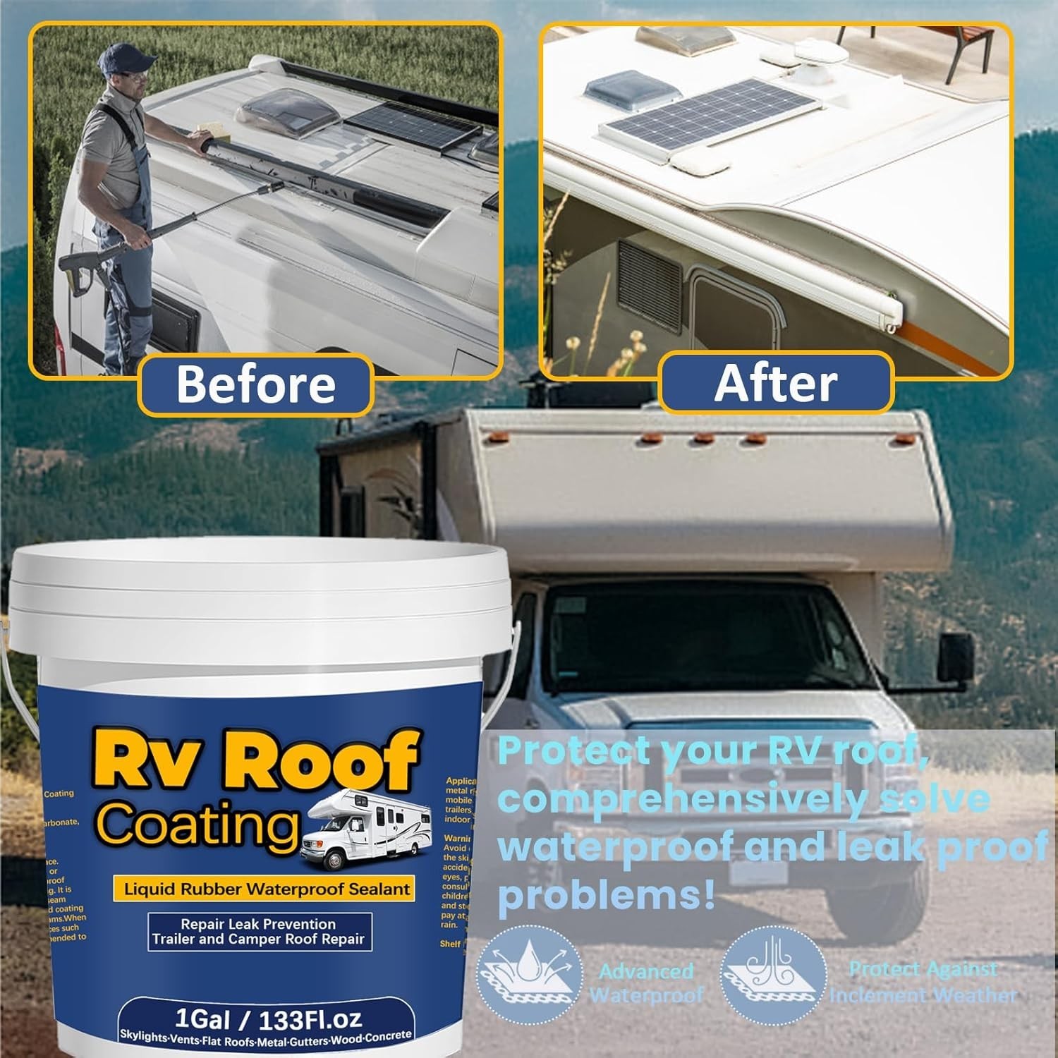 1Gal/133Fl.oz Liquid Rubber Rv Roof Coating White Waterproof Sealant Camper Roof