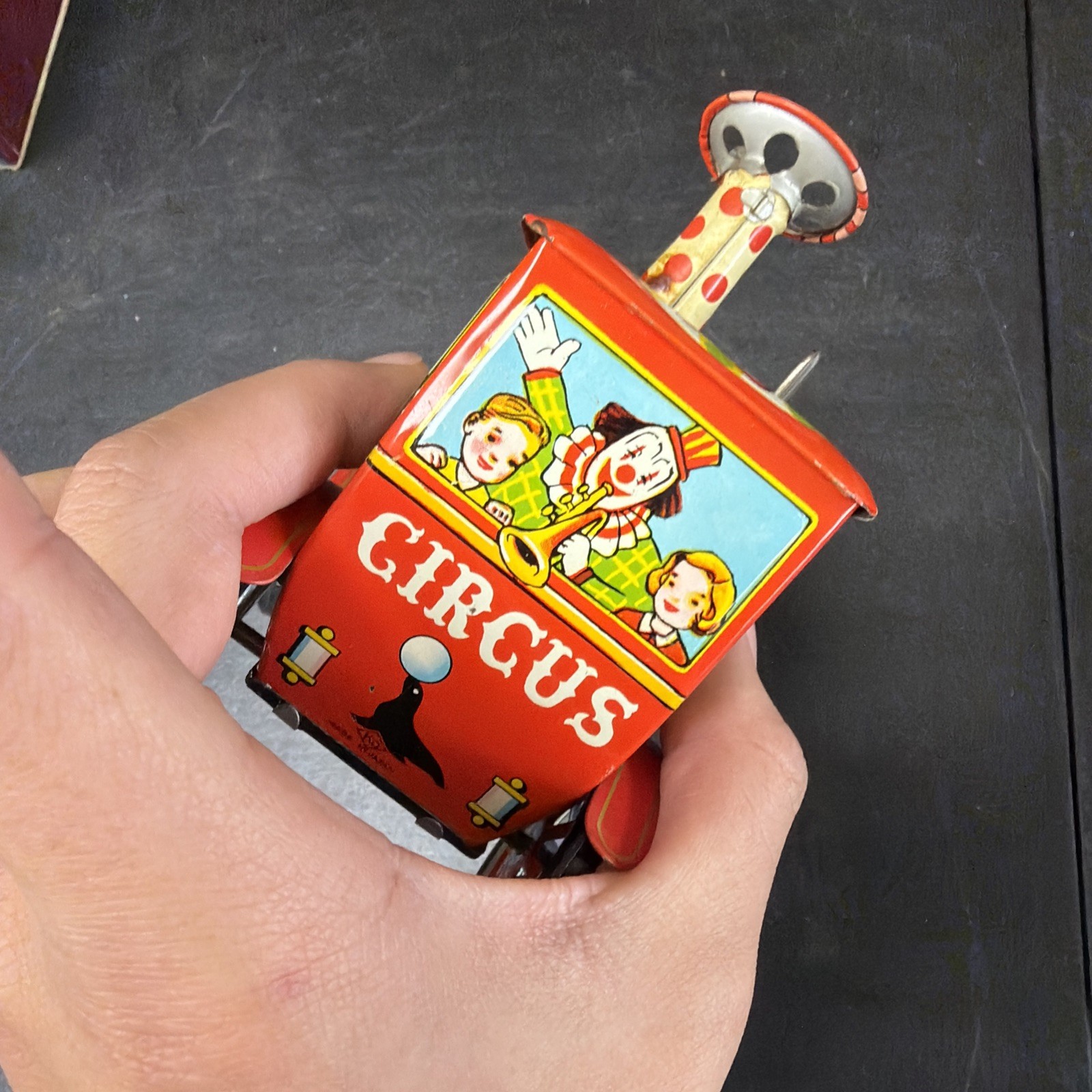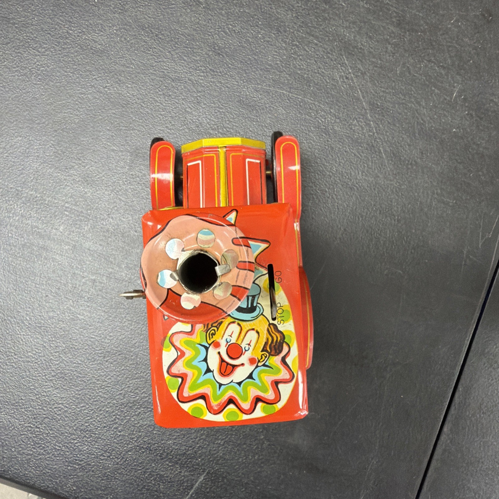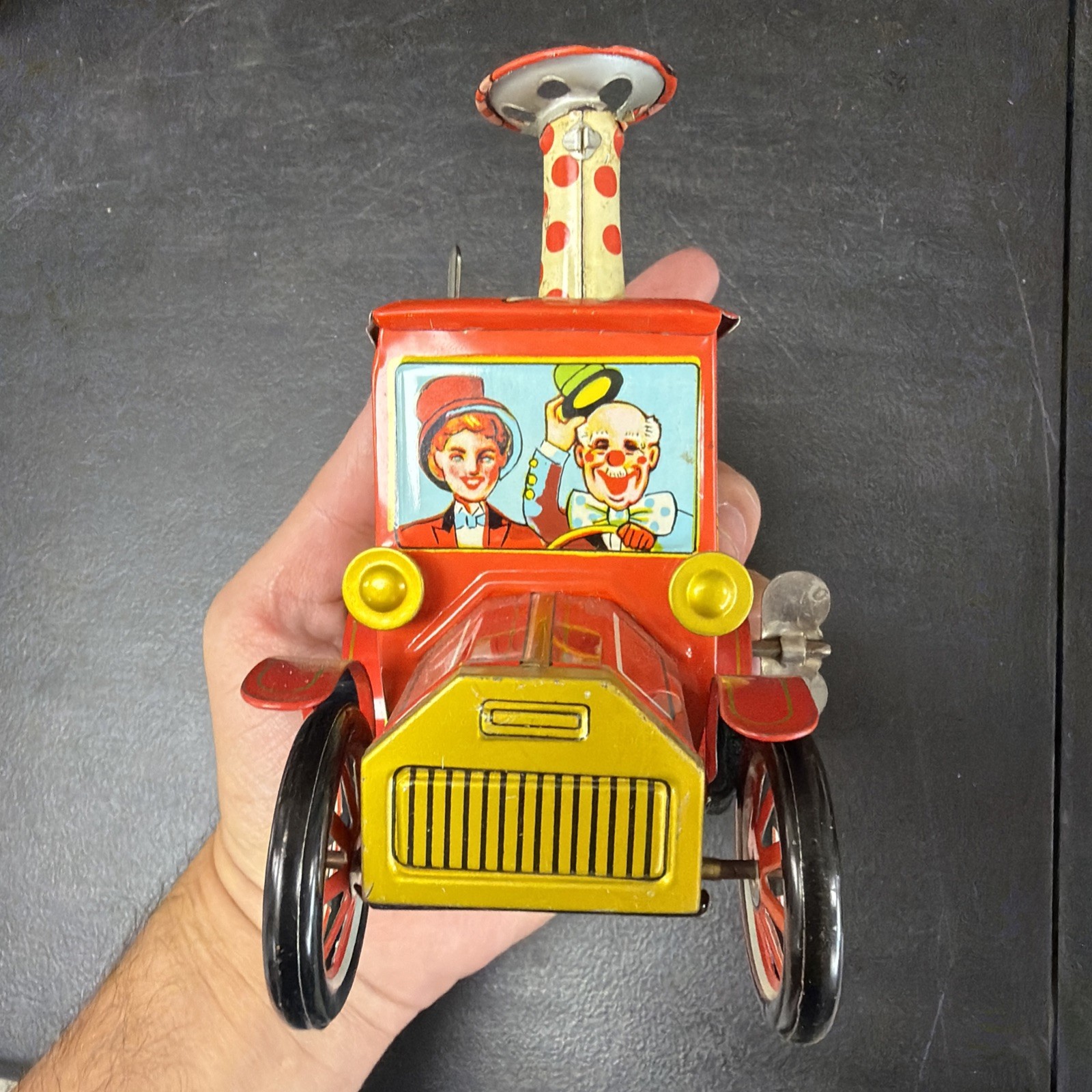 Vintage KO Circus Clown Tin Litho Car red Windup Key Japan-Works