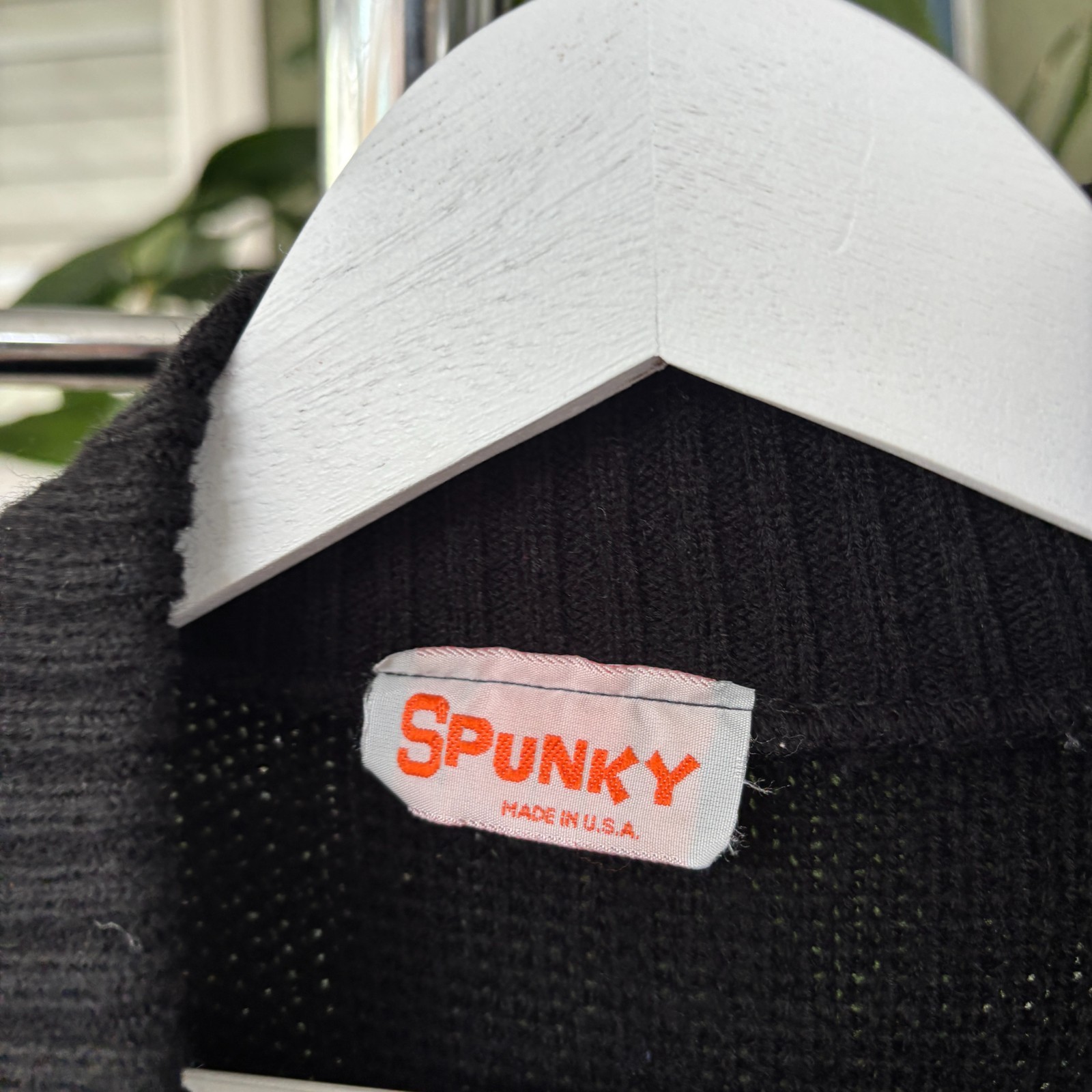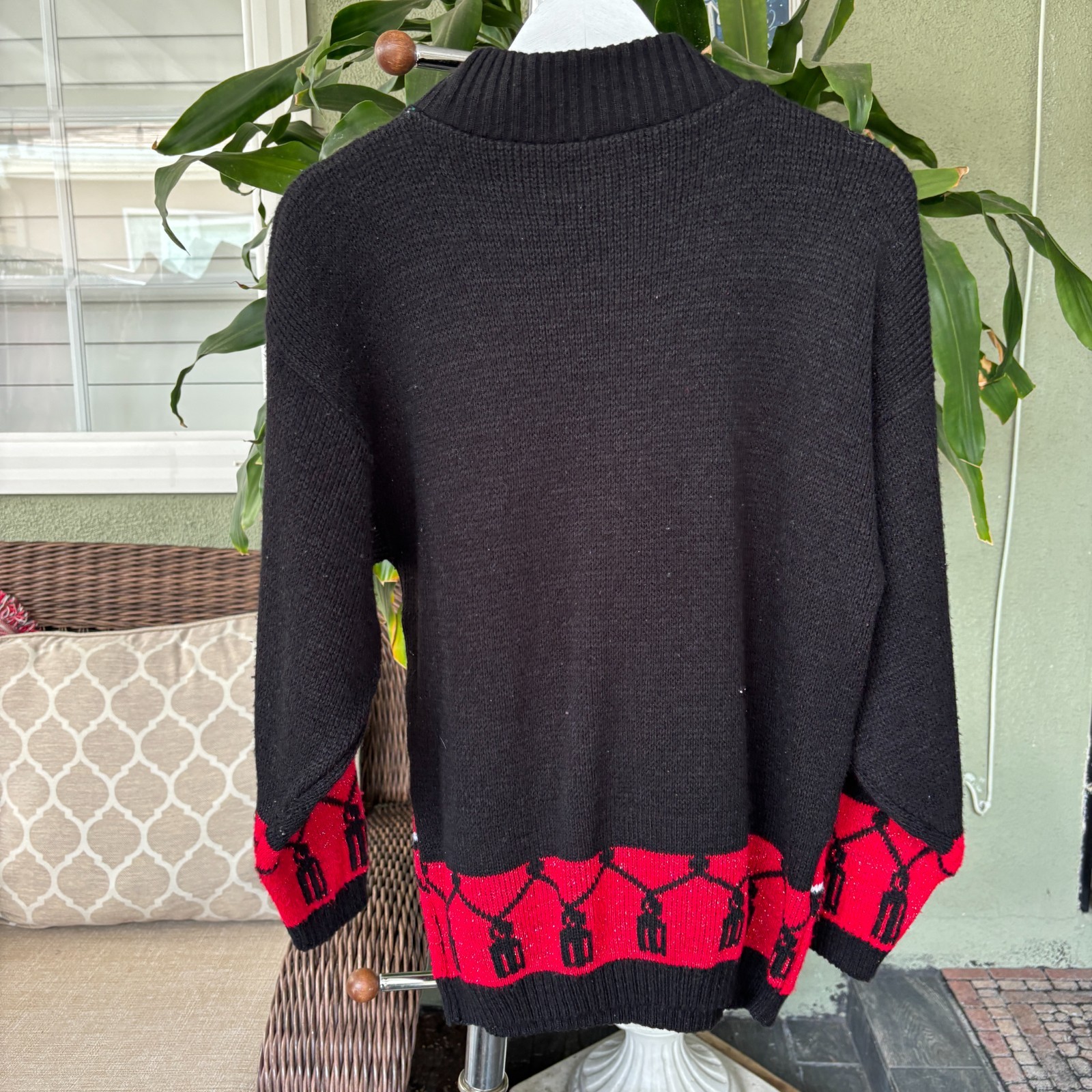 Vintage 80s Women's Spunky Kitty Cat Knit Sweater MockNeck Sparkle Sz M Cute