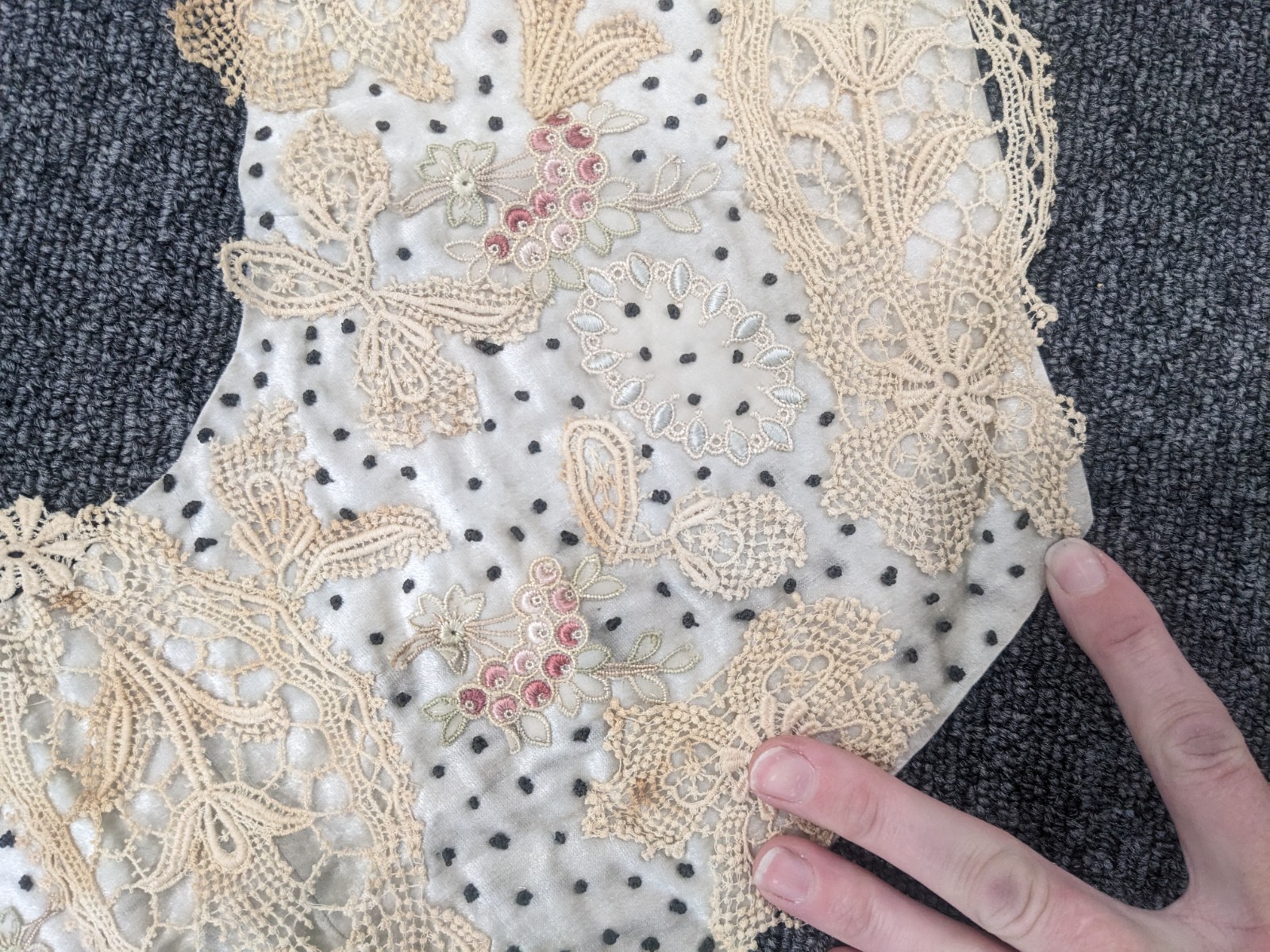 Antique Victorian/Edwardian Bodice Blouse Collar velvet lace as is study