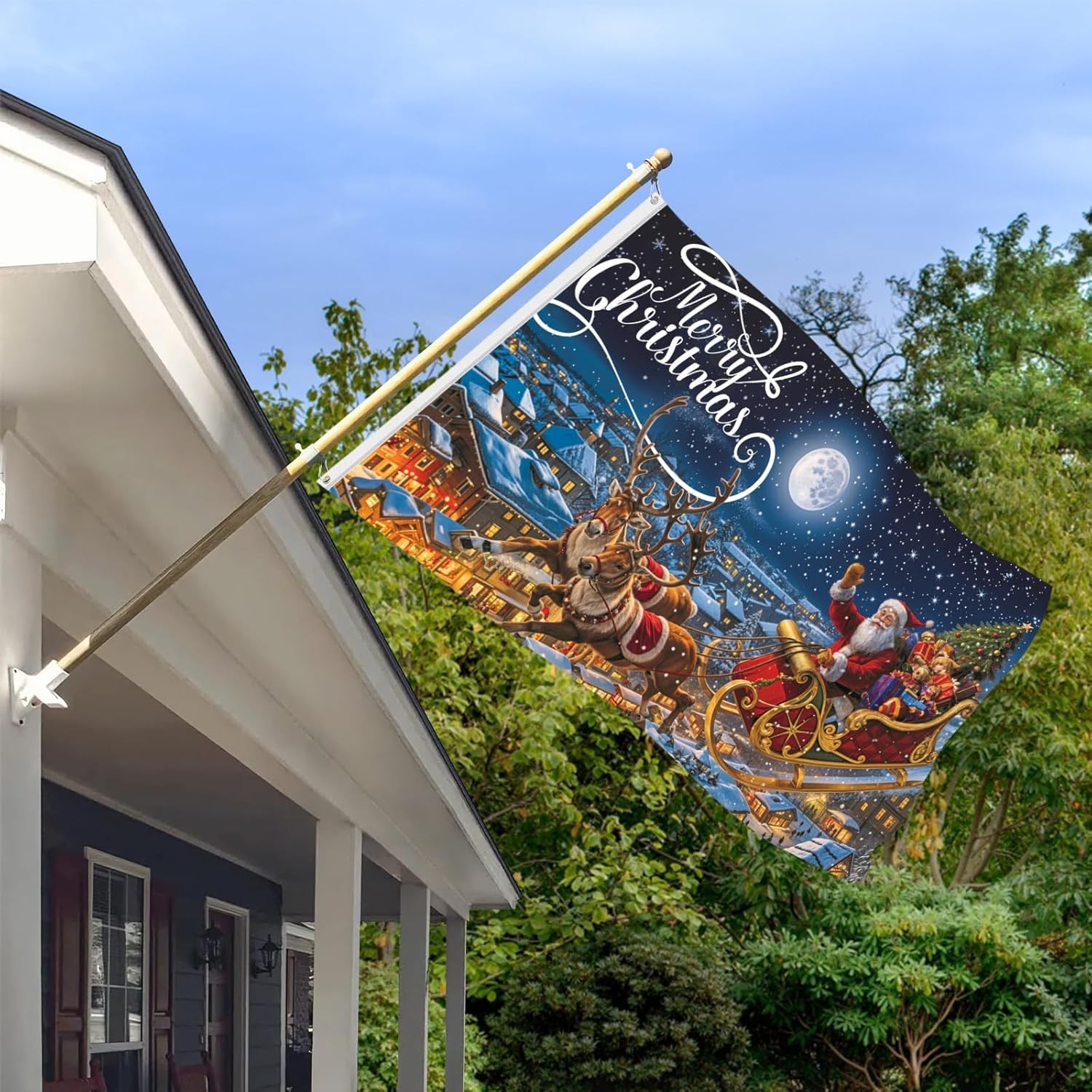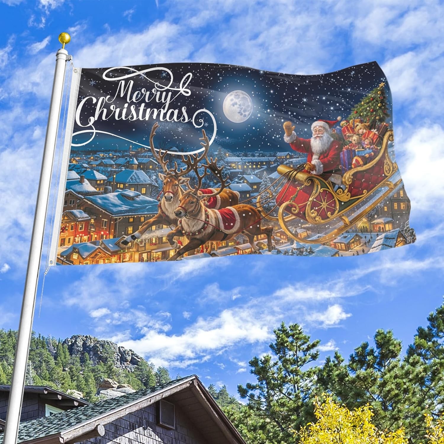 Merry Christmas Flag 3x5 Ft Santa Reindeer Outdoor Indoor Holiday Yard Decor