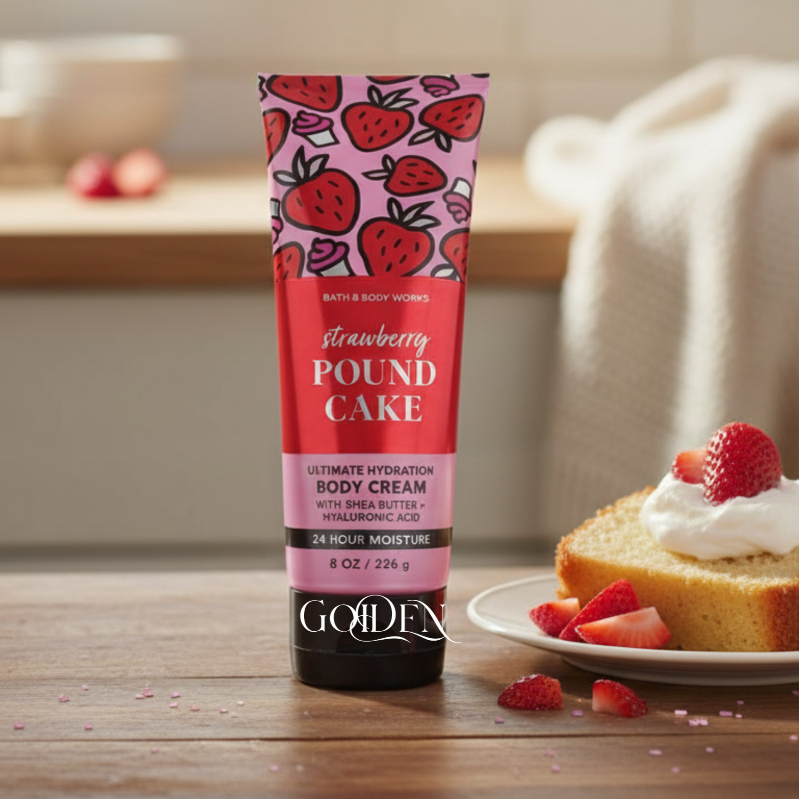 Bath Body Works Strawberry Pound Cake Body Cream 8 oz Aloe Shea Cocoa Butter