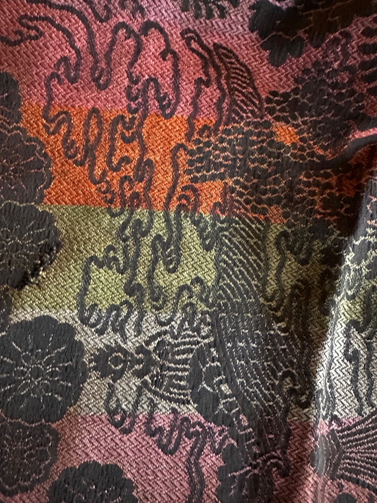Victorian Jacquard Piano Cover Shawl 3" Silk fringe 55 x 67
