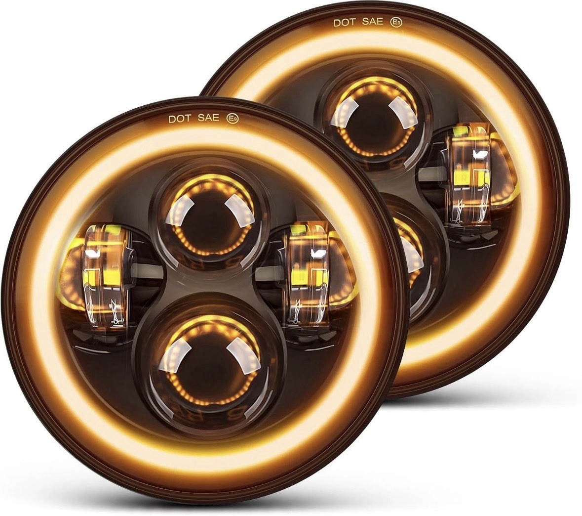 7 inch Round LED Headlight Hi/Lo Beam H6024 Projector DOT Approved, White/Amber