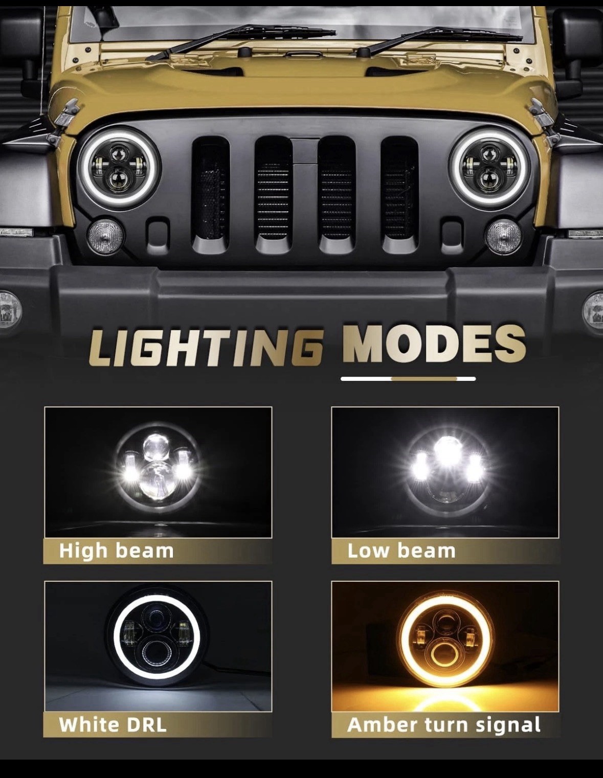 как выглядит 7 inch Round LED Headlight Hi/Lo Beam H6024 Projector DOT Approved, White/Amber фото