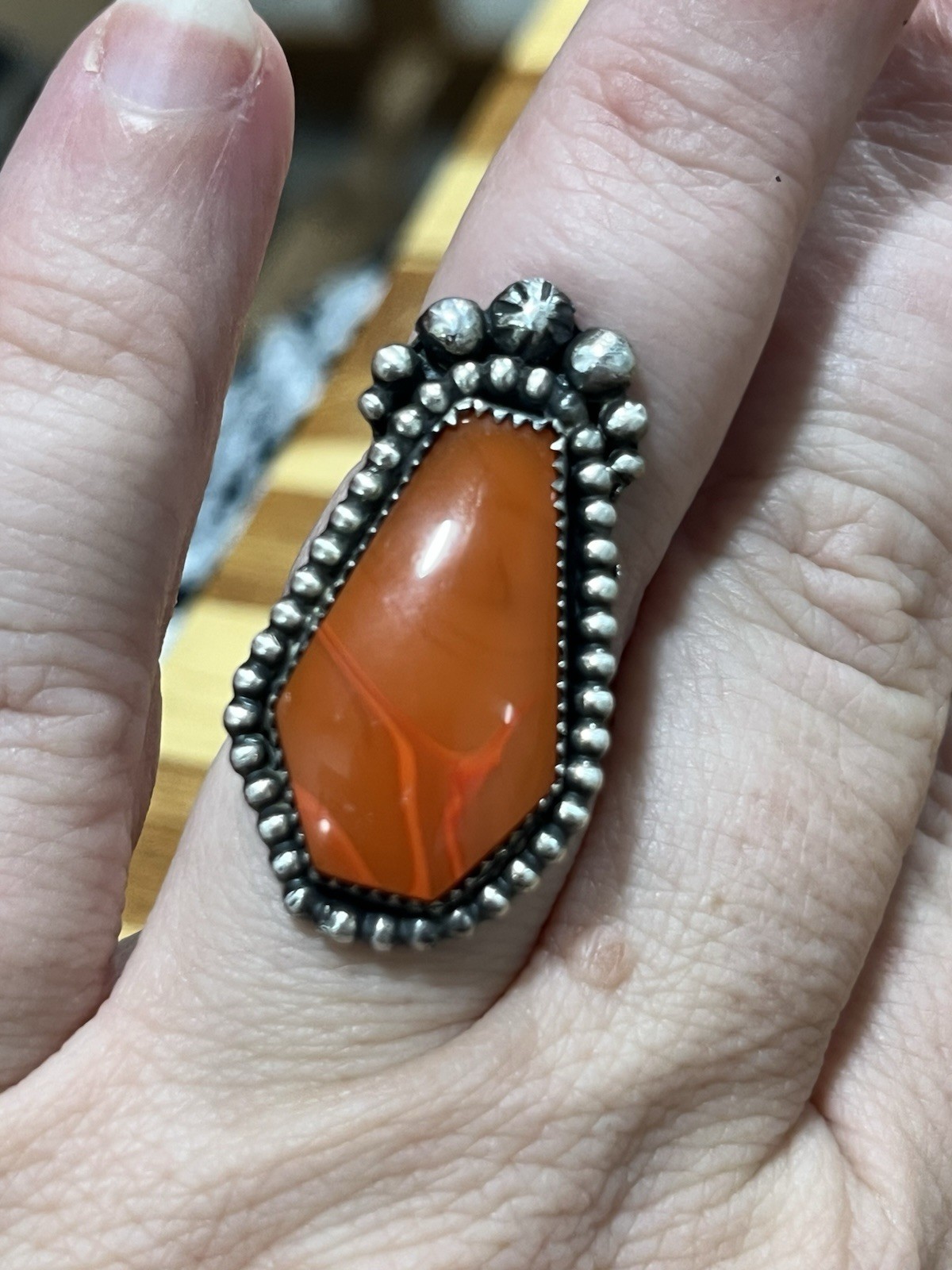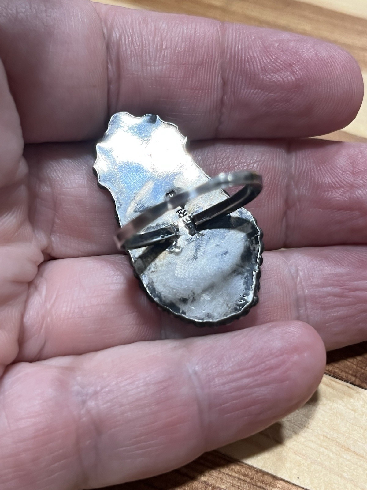 Vintage Agate Sterling Silver Western Statement Ring 925 Size 7