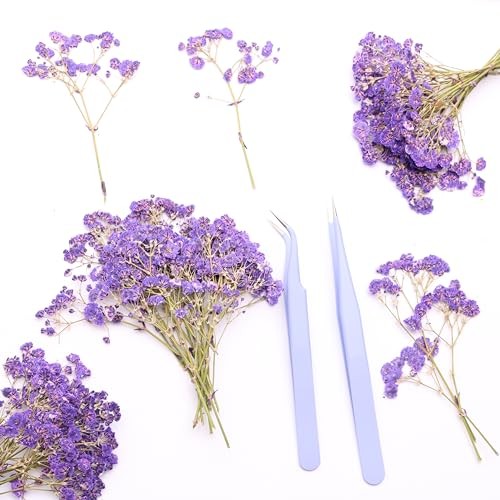 70 Branches Pressed Flowers Bulk Dried Flower for Resin , Dried Babys Purple
