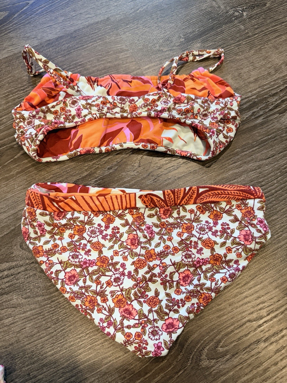Maaji Girls 2 Piece Bikini Swimsuit Orange floral Reversible 12