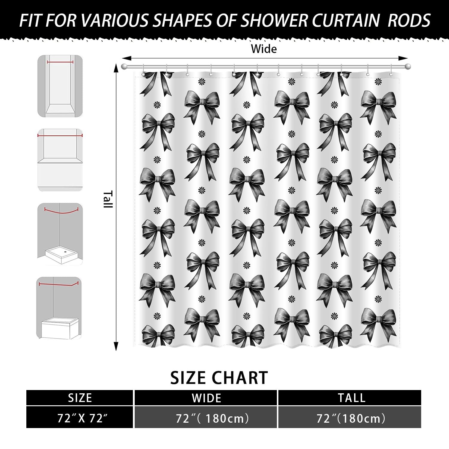 Black Bow Shower Curtain Set, Cute Modern Girl Bathroom Aesthetic Polyester C...