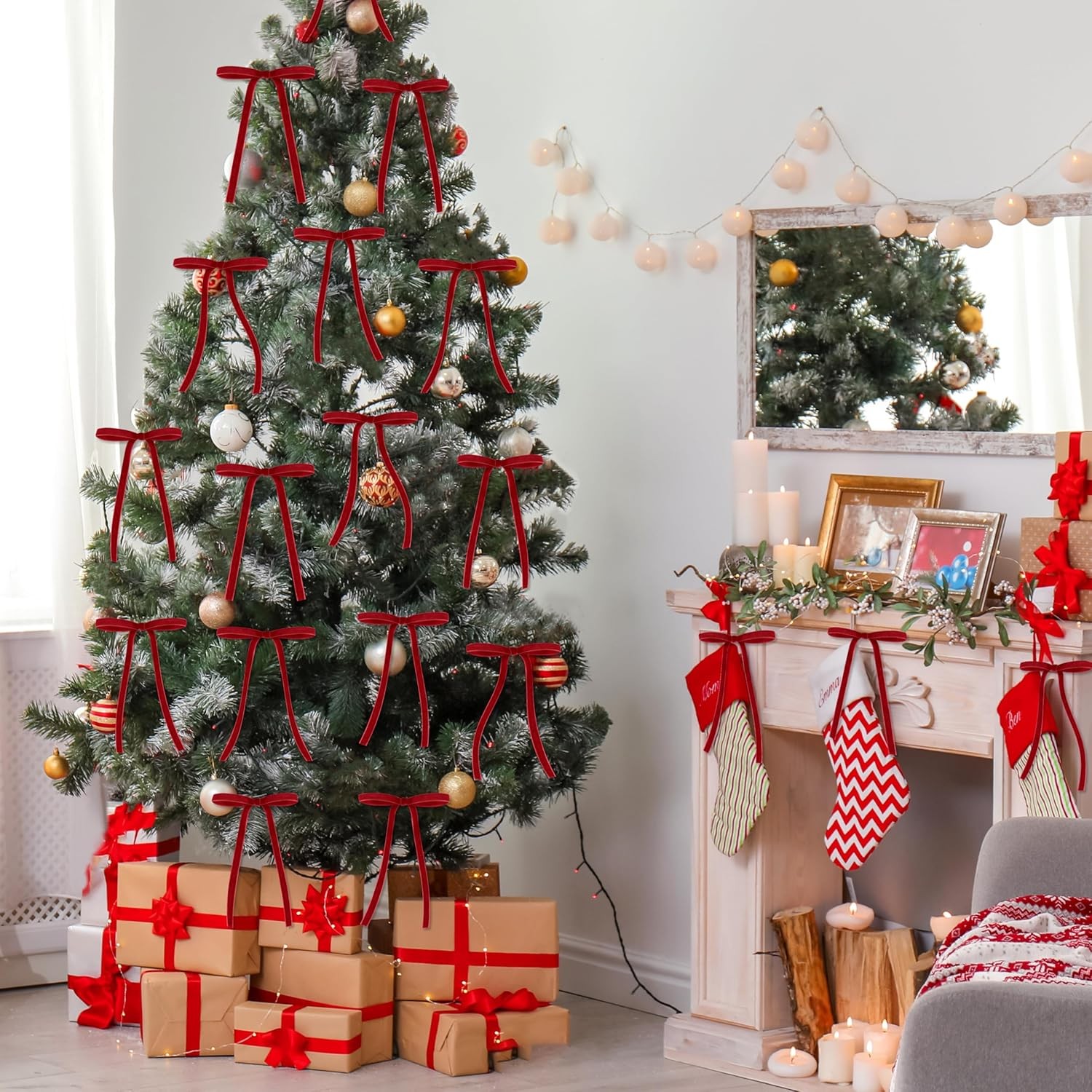 30Pcs Red Velvet Christmas Bows 5x7 Twist Tie Gift Tree Wreath Decorations