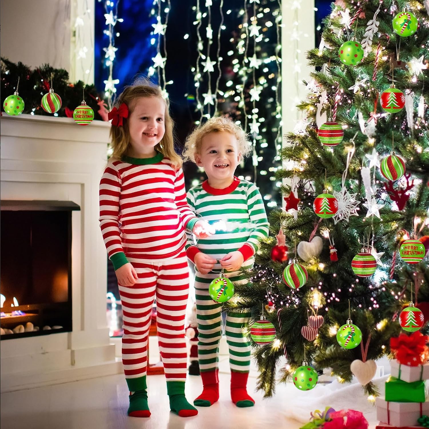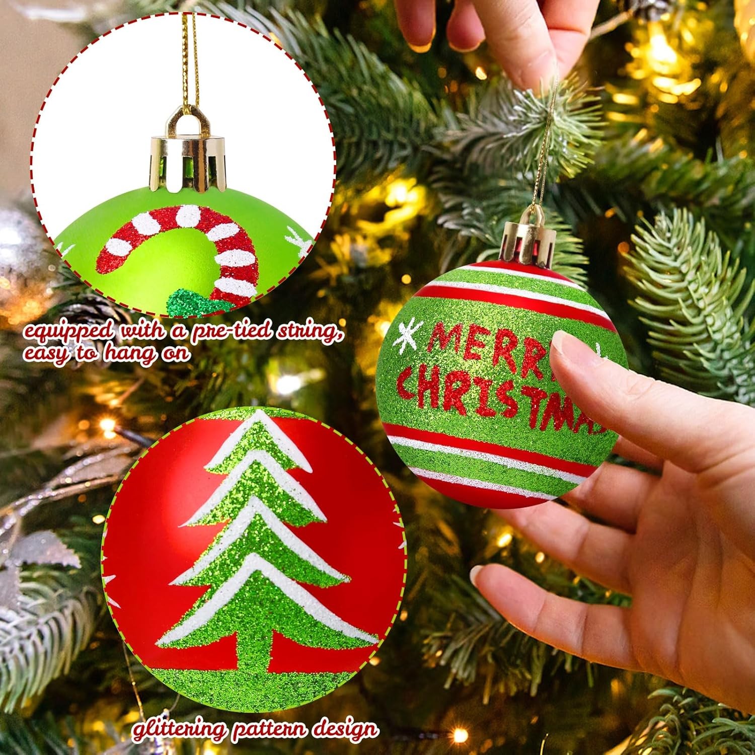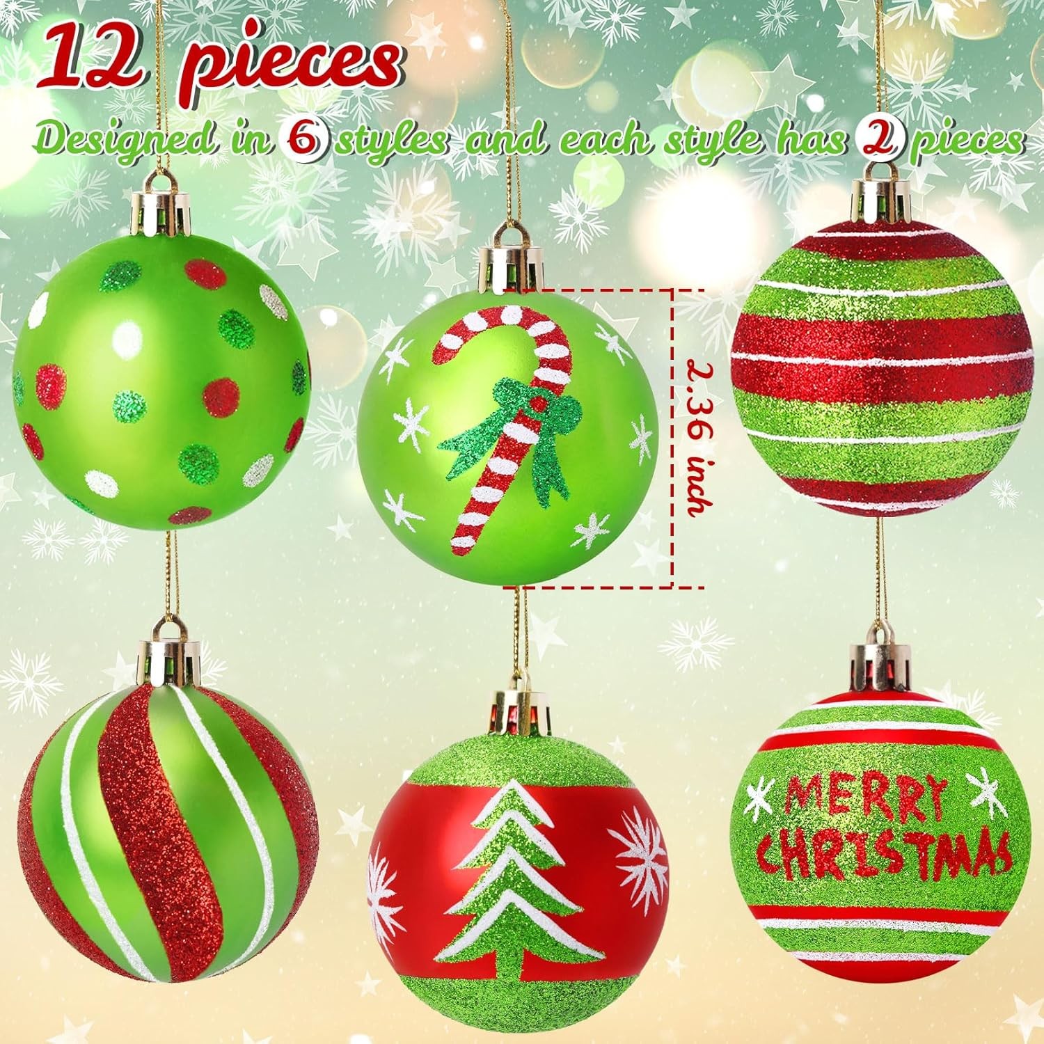 12 Pcs Christmas Tree Ornaments 2.4 Red Green Glitter Hanging Balls