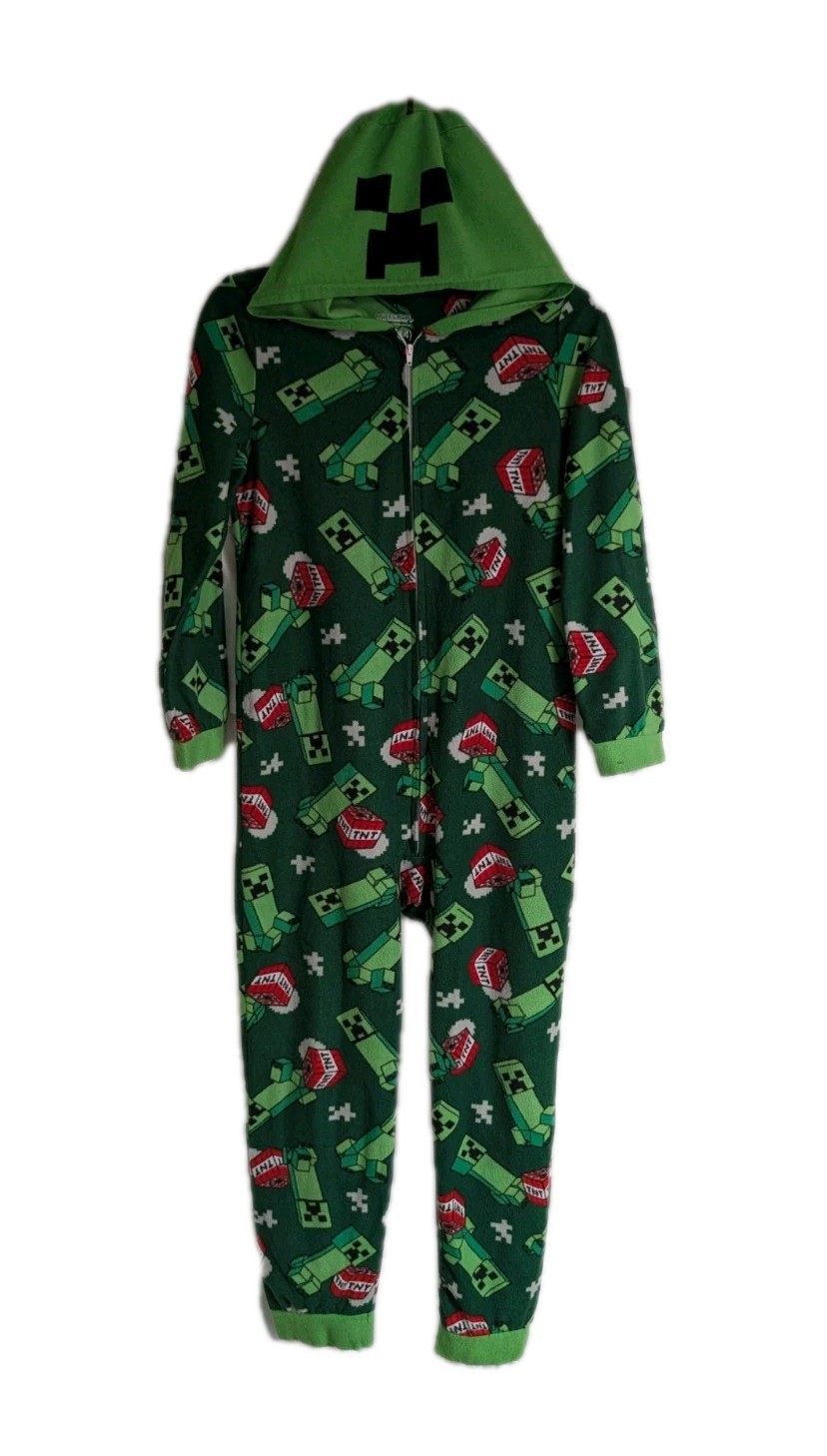 как выглядит Minecraft Boys 14/16 Fleece One Piece Hooded Blanket Sleeper Pajamas 0356 фото