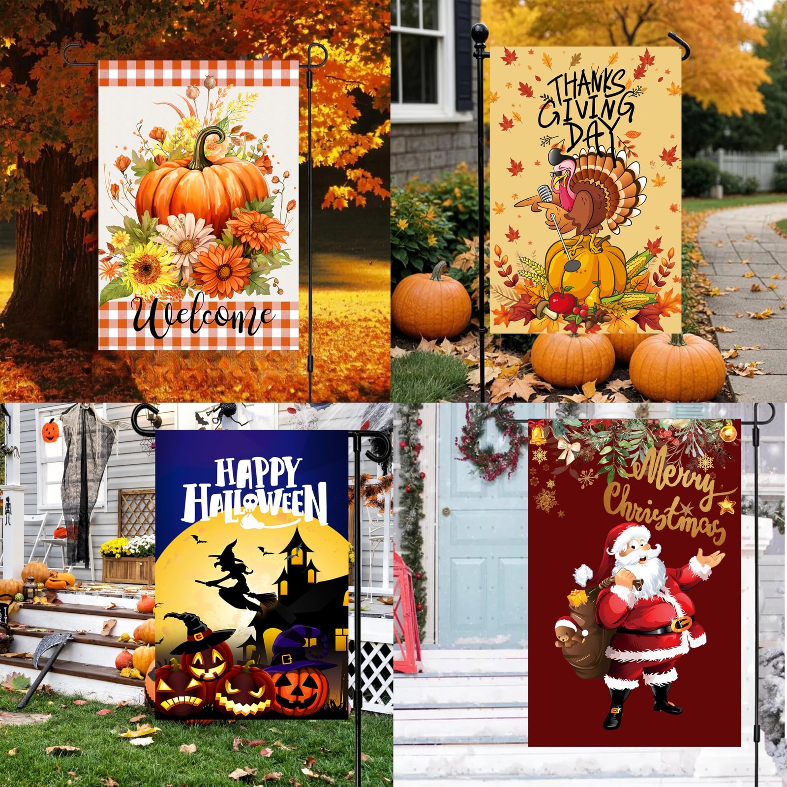 Seasonal Garden Flag Set of 12 Yard Flags for Outside12x18, Double Sided Than...