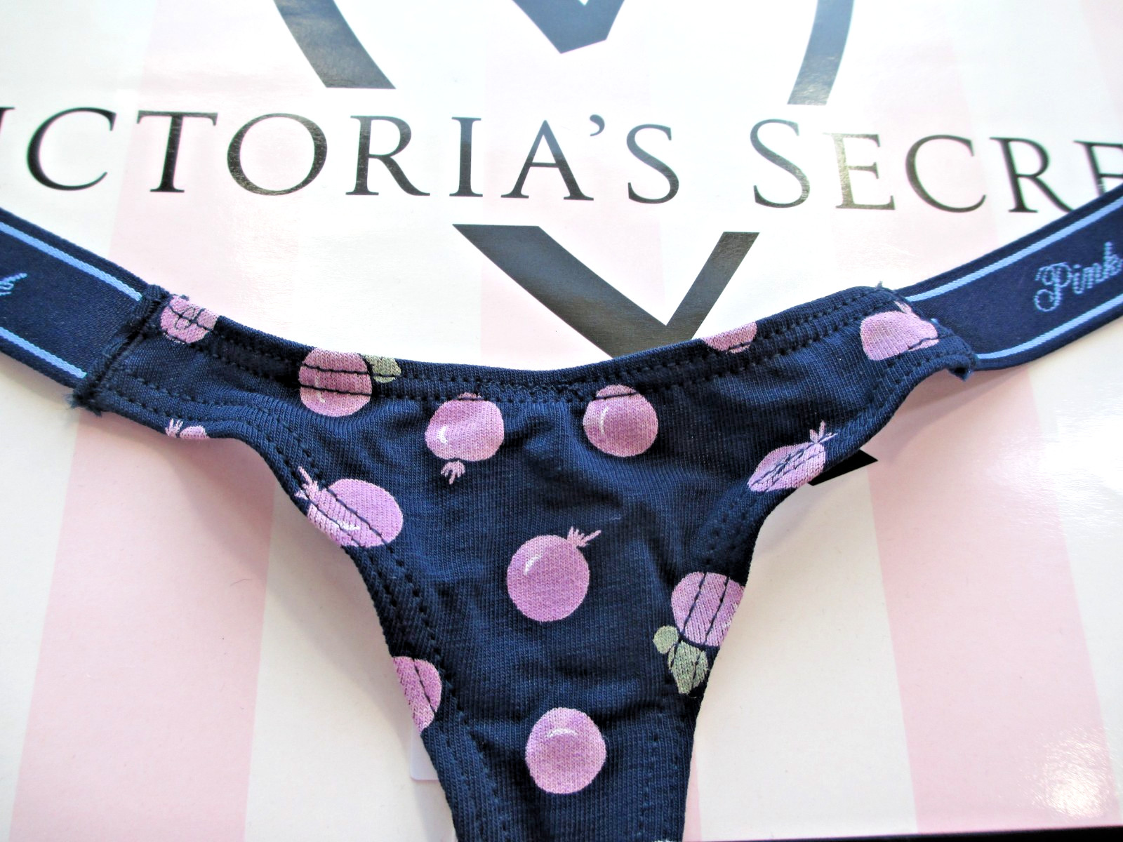 как выглядит VICTORIAS SECRET PINK Cotton High Leg Micro Thong Panty VS Blue Blueberries S L фото