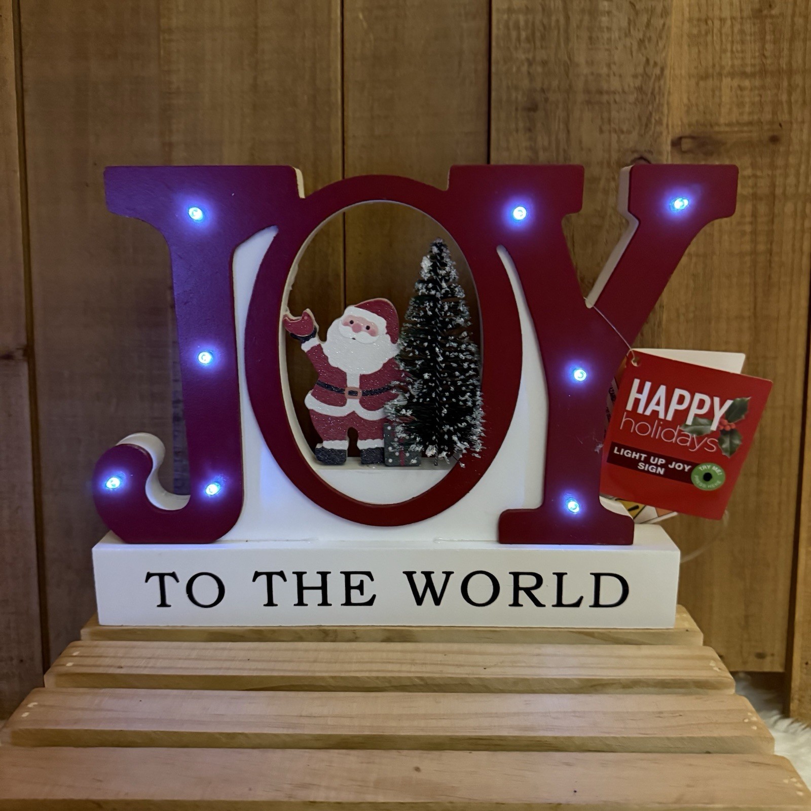 Happy Holidays JoY Light Up Sign Christmas Tree Santa Home Table Decor New