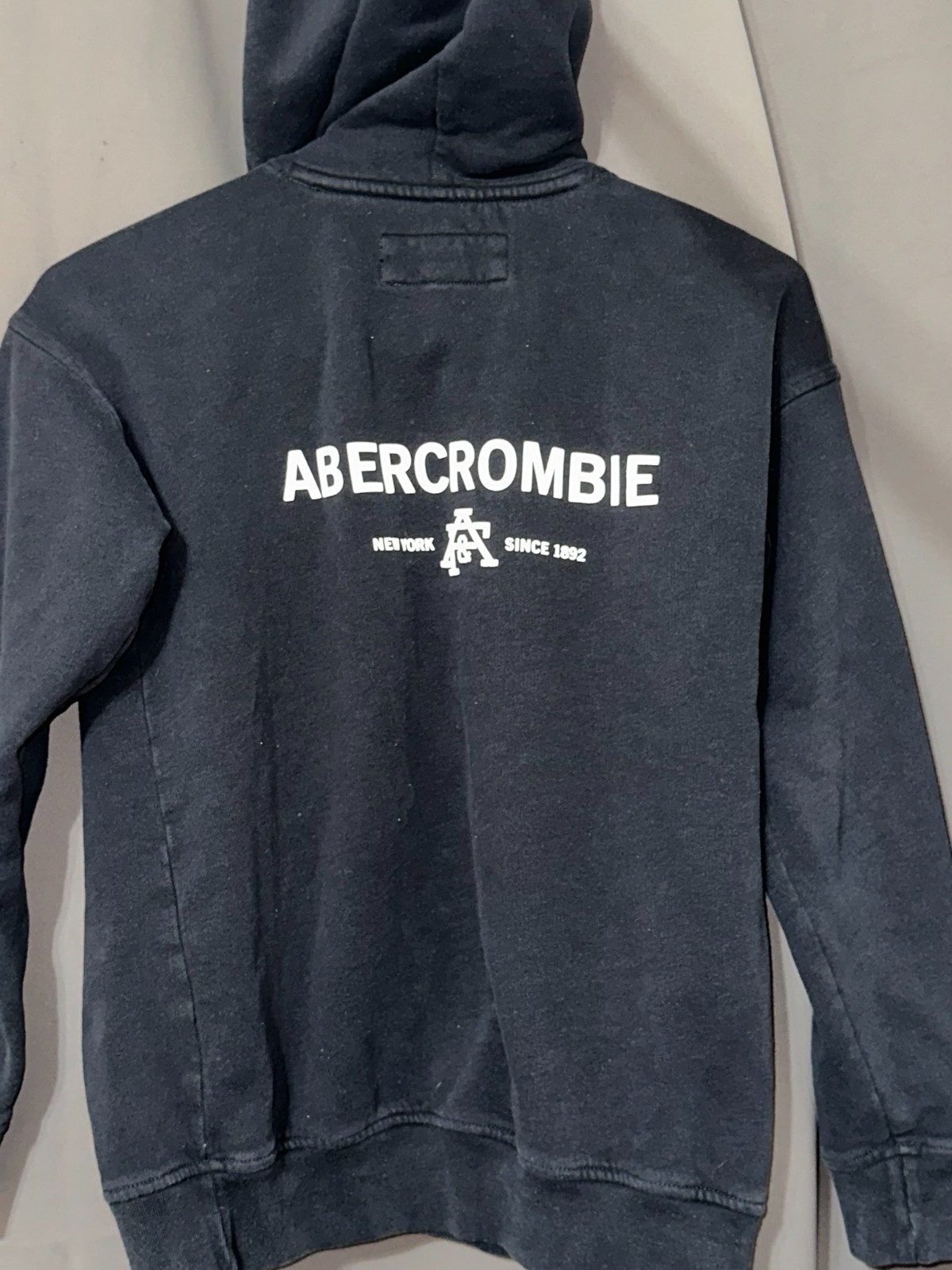 как выглядит Abercrombie Fitch Black Hoodie  Youth L 11/12  A F Logo, Relaxed Fit, NY фото
