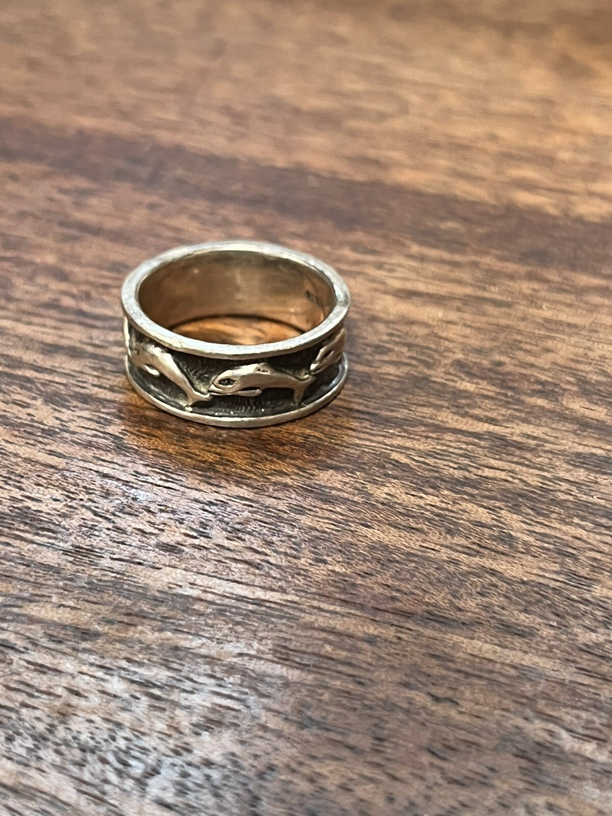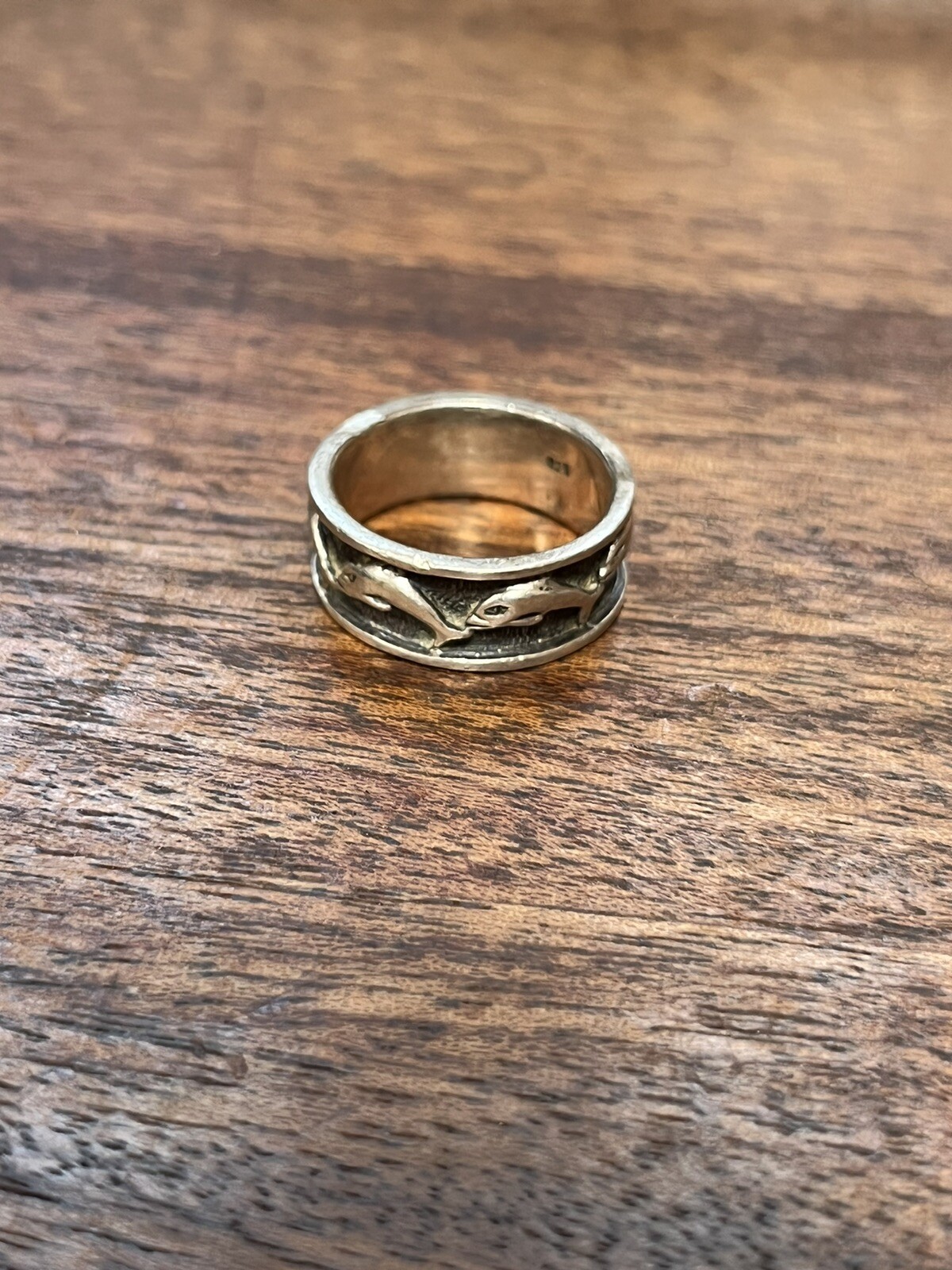 925 Sterling Silver Vintage Friendly Dolphin Band Ring Size 8