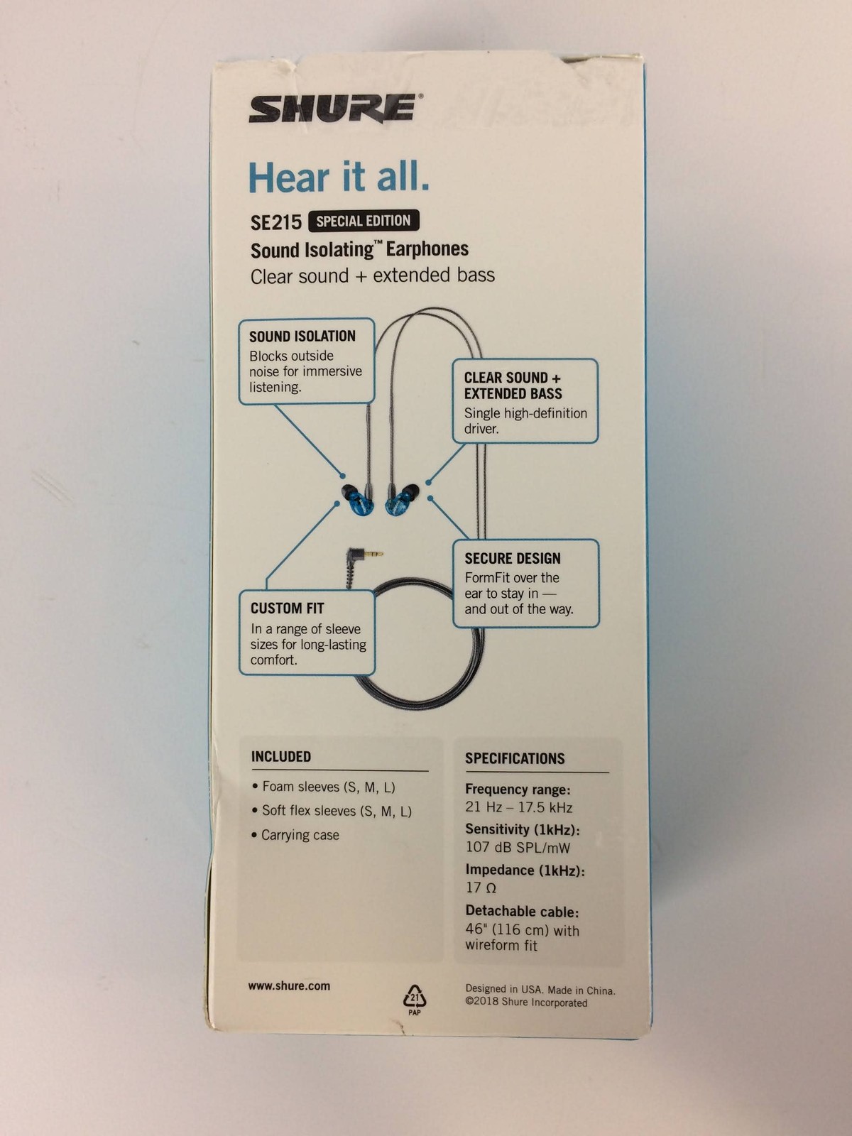 Excellent Shure SE215 Single Driver In-Ear Monitors, Special Edition Blue