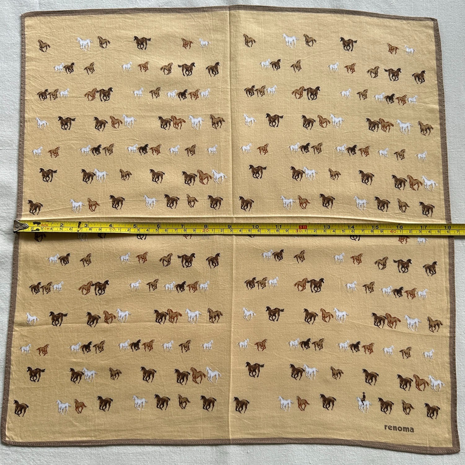 VTG Equestrian Rider Horse Riding Handkerchief Yellow Cotton Pocket Square 18
