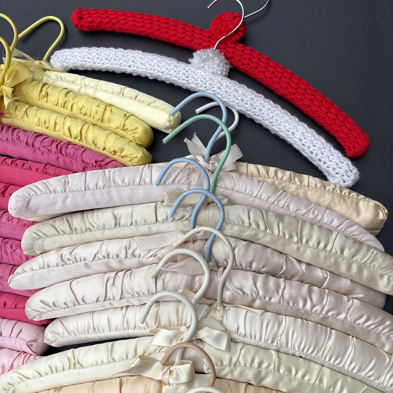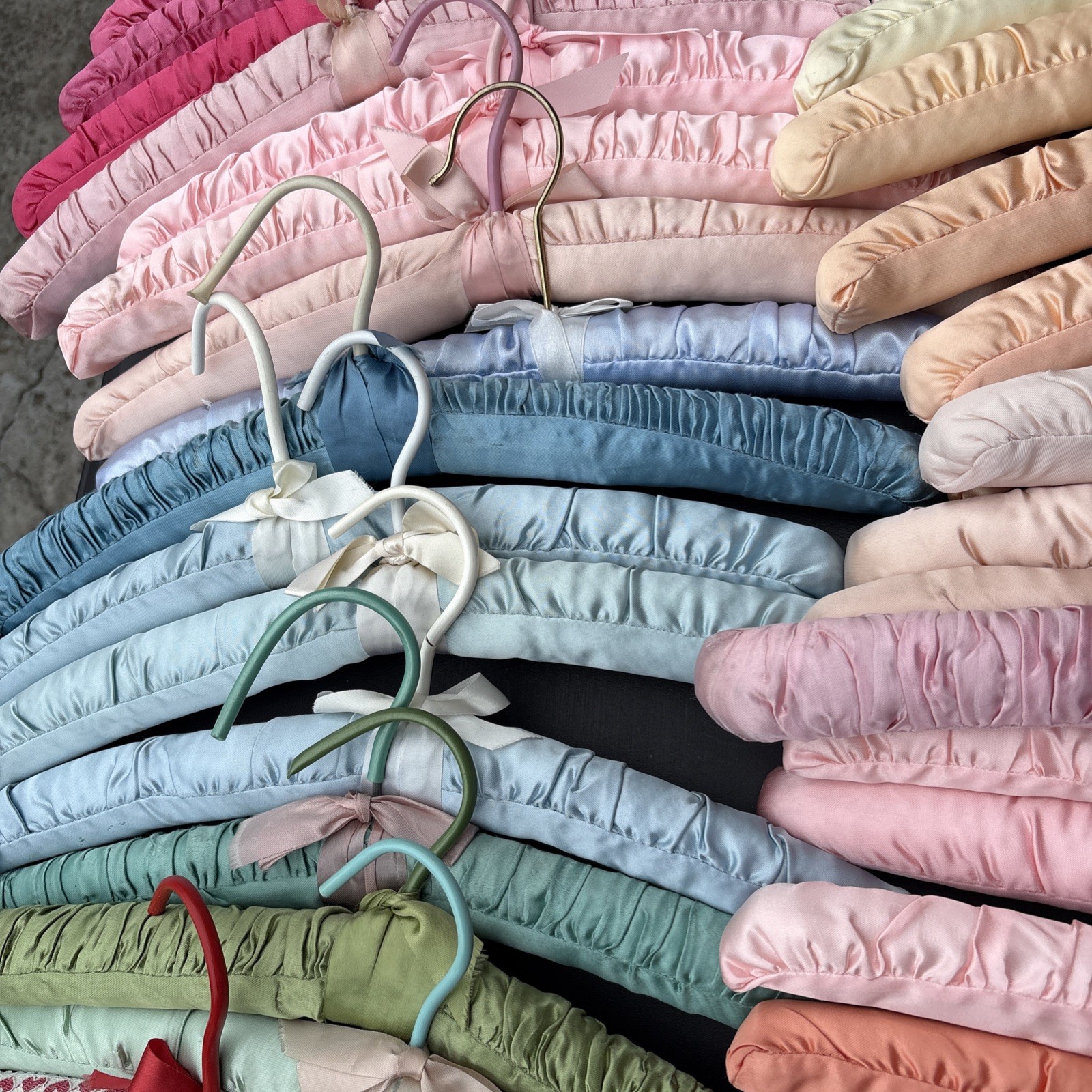 Vintage 46 Total Satin Boudoir Hangers with Bows. Pre-Owned By 1 Person 2 Free