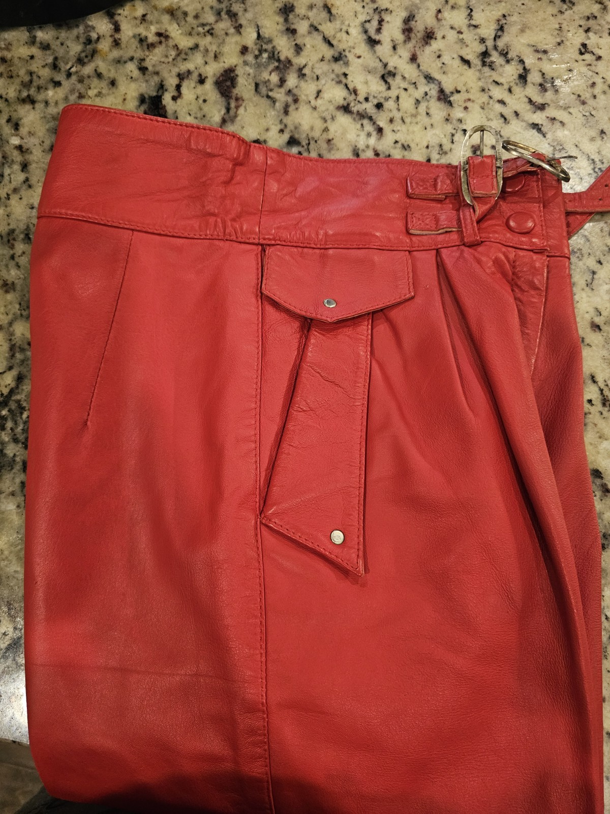 как выглядит Vintage 80s Ladies Red Leather Pants Small фото