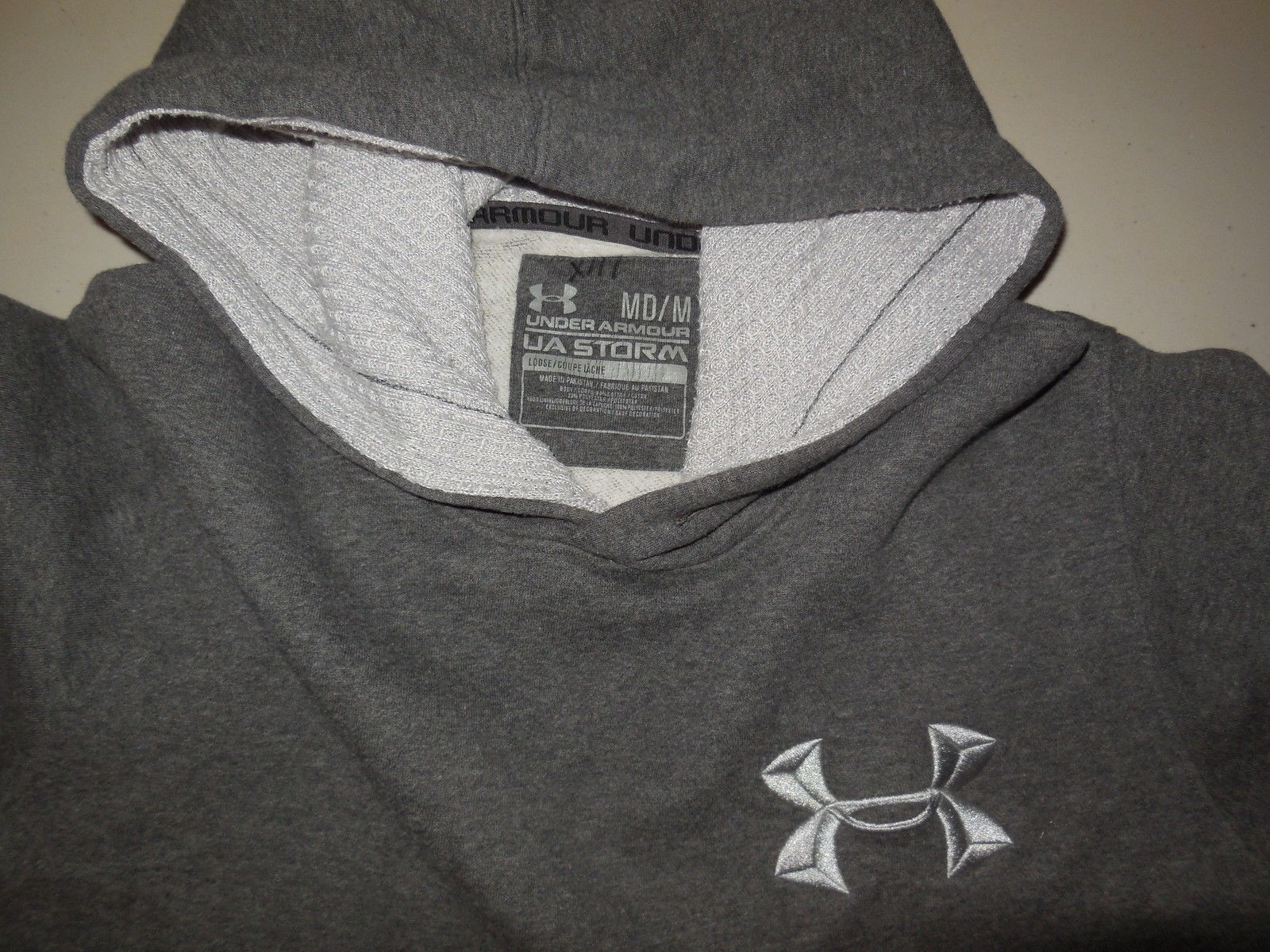 как выглядит Under Armour Storm Hooded Sweatshirt Grey Cotton Hoodie Jacket Coat Sewn Medium фото