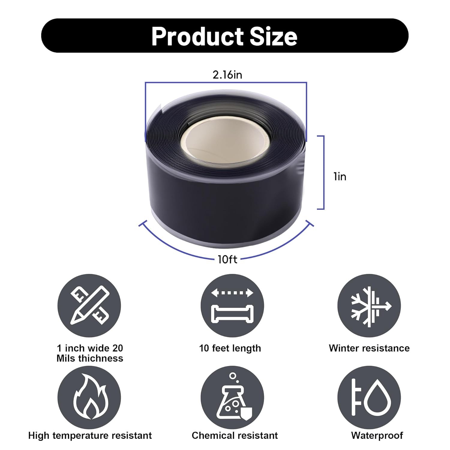 Self Fusing Silicone Tape 2 Rolls 1 in x 10' Black Waterproof Rescue Tape Rubber