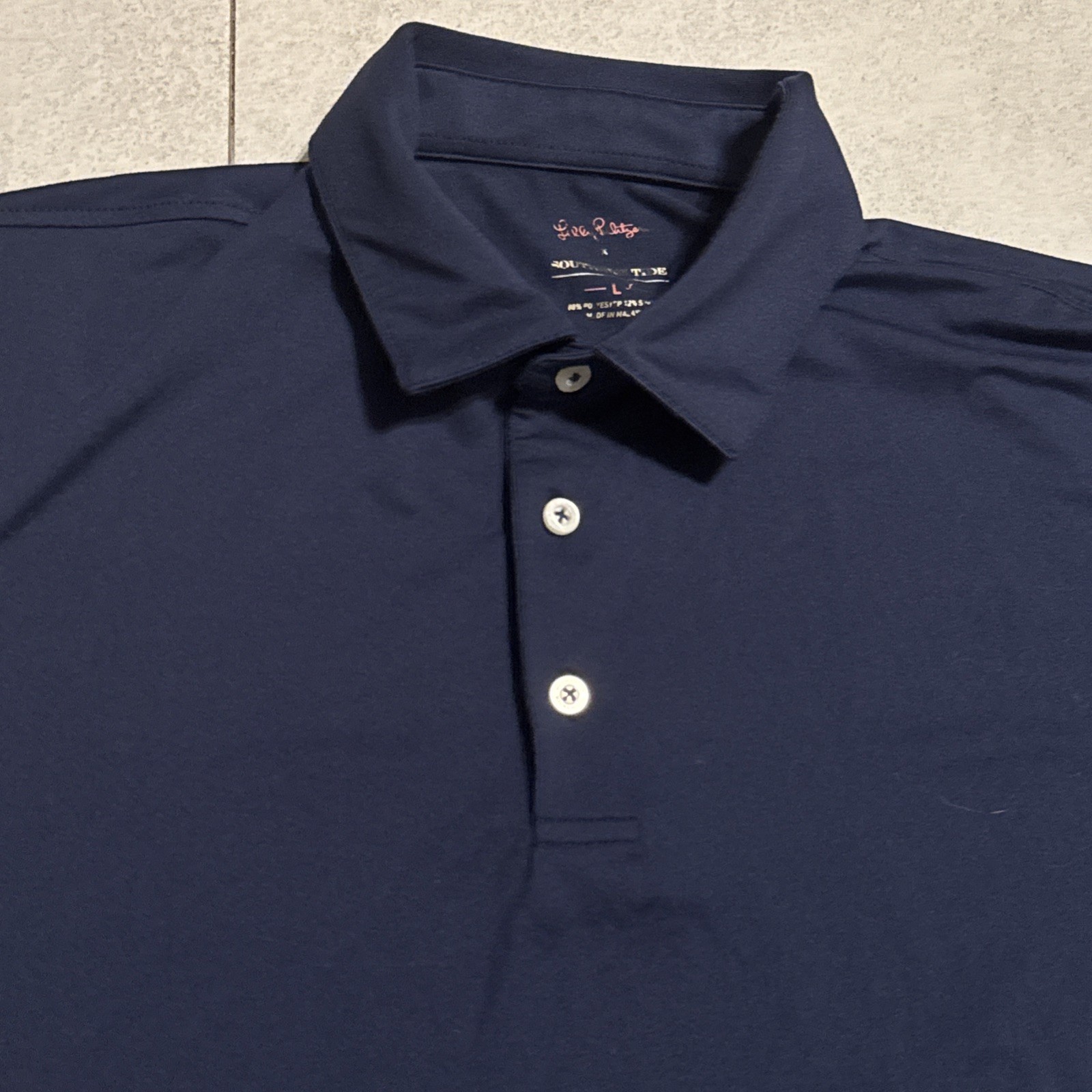 Lilly Pulitzer x Southern Tide Mens Size Large Polo Shirt Blue Stretch Golf