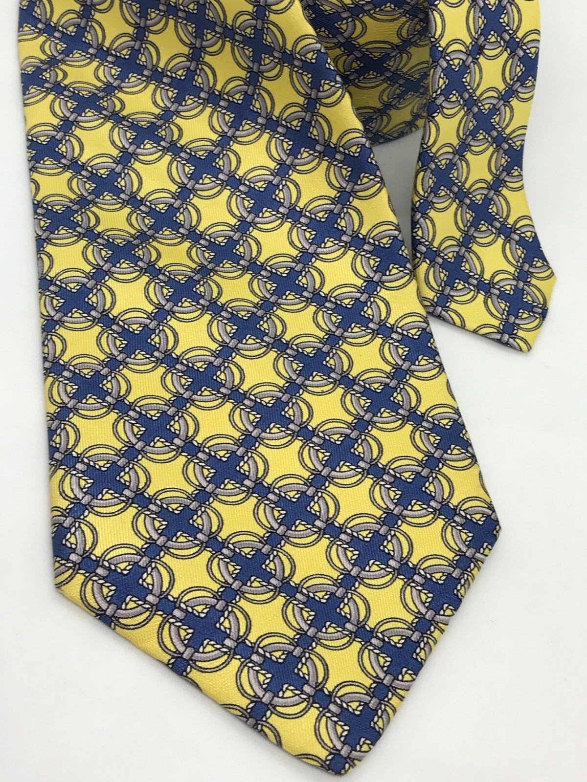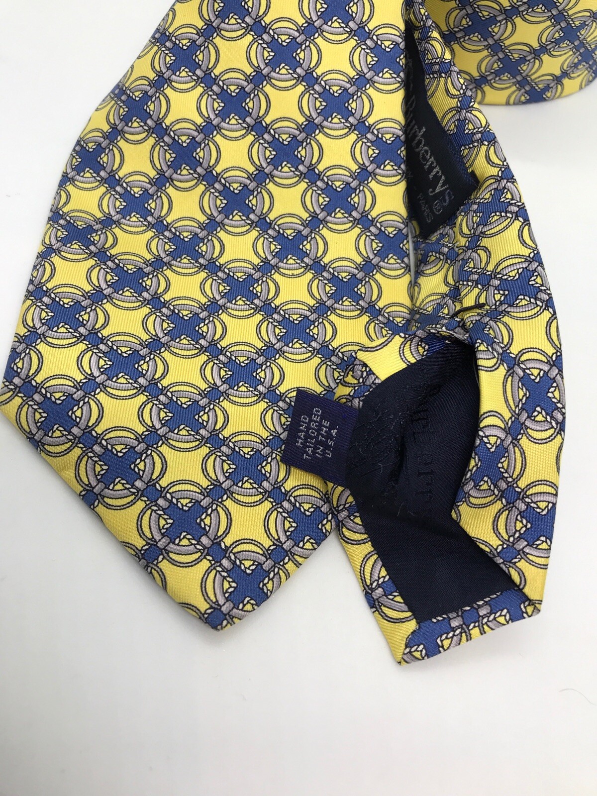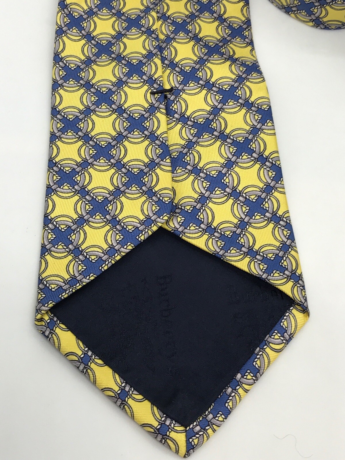 как выглядит Vintage Authentic Burberry Yellow w Blue Gray Print 100 Silk Mens Tie USA фото