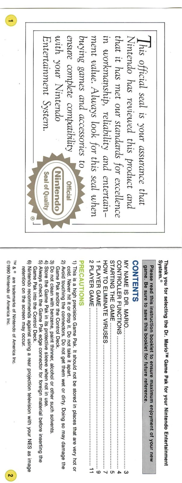 MANUAL ONLY Dr. Mario Nintendo NES, 1990 Authentic. Clean. Complete.