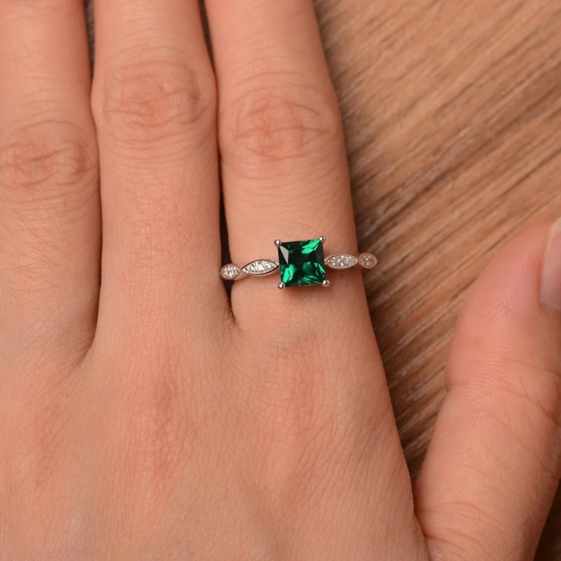 как выглядит 2CT Emerald Lab Created Gold Plated Solitaire Ring Duty Free фото