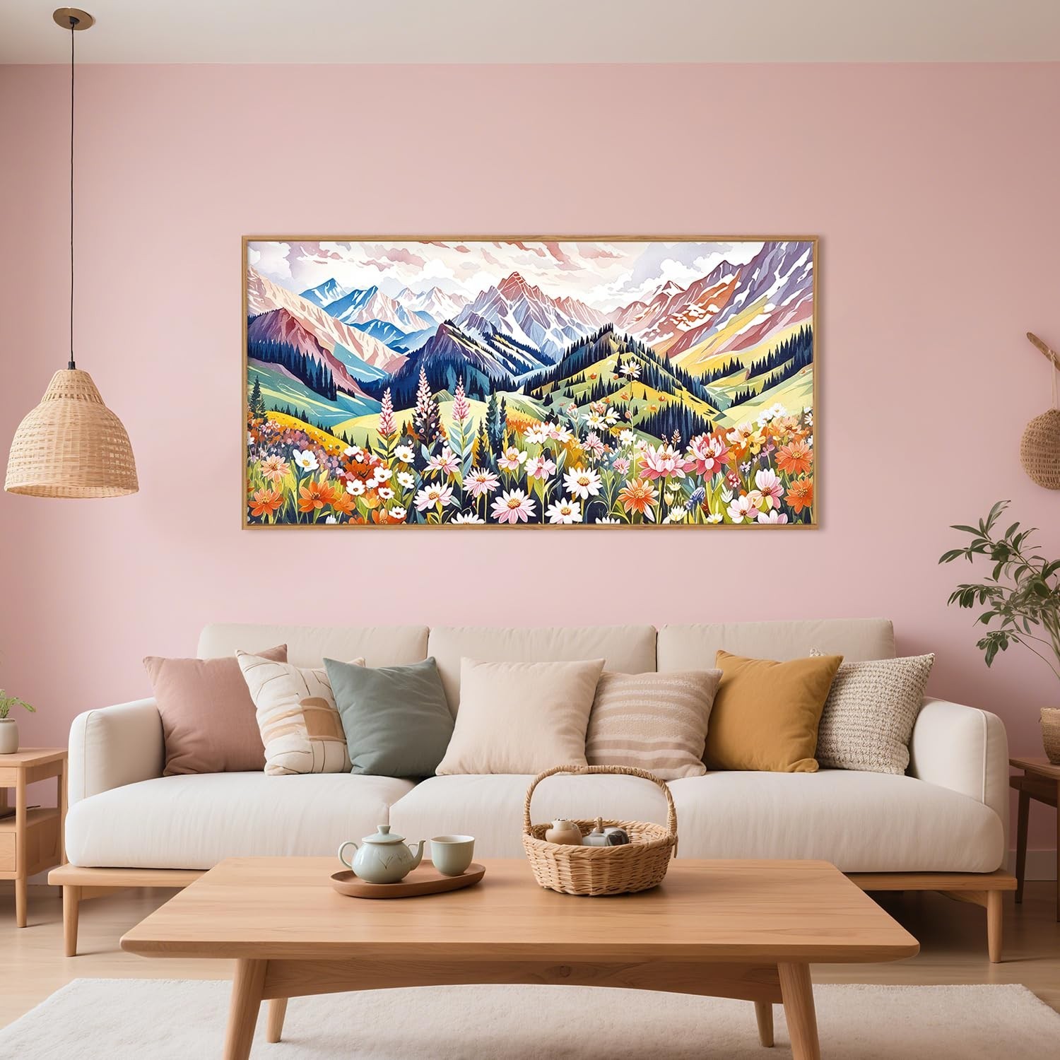 Large Colorful Scenery Framed Canvas Wall Art, Abstract Floral Mountain Wall ...