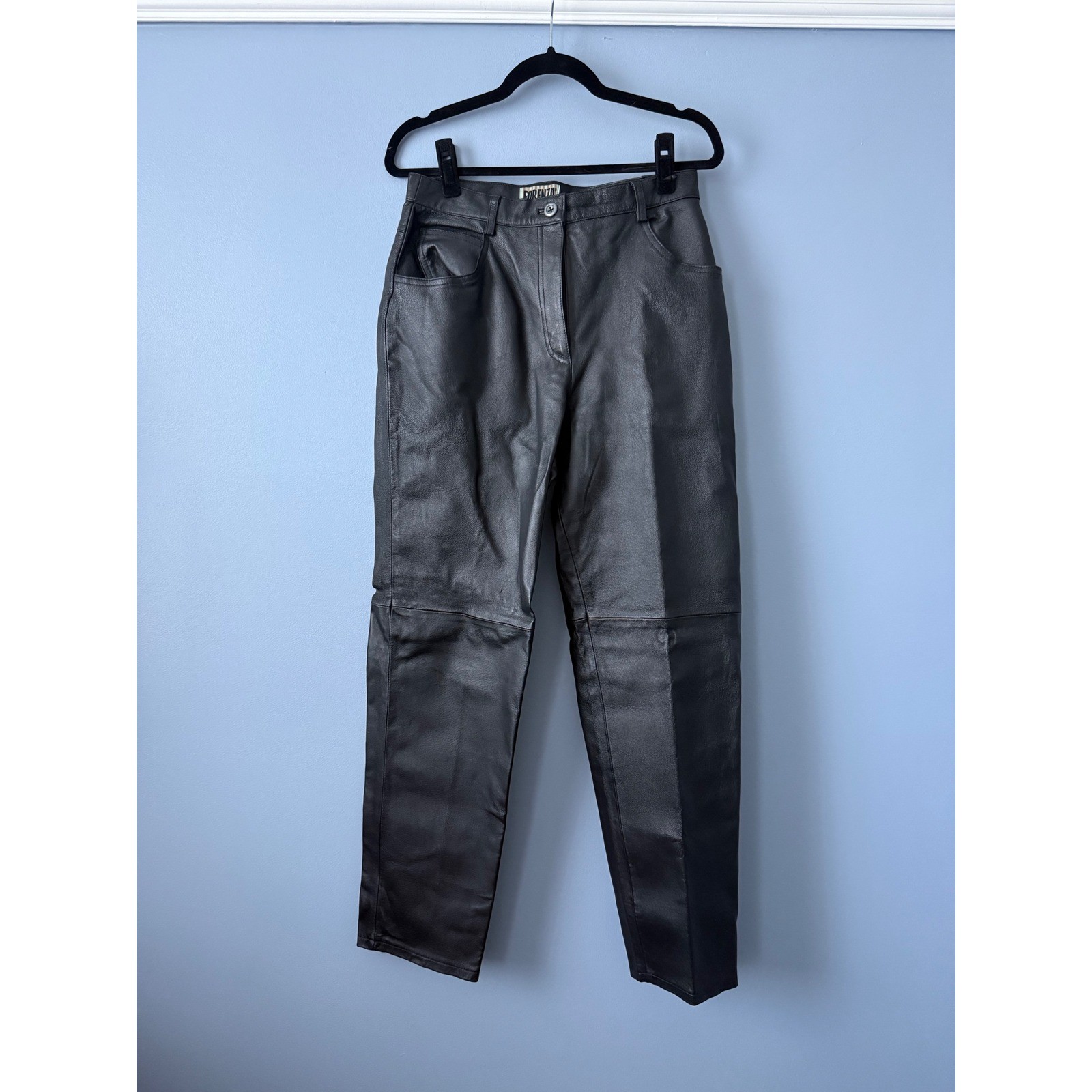 как выглядит Vintage Forenza Womens Leather Pant Black Fully lined Biker Moto Casual Size 12 фото
