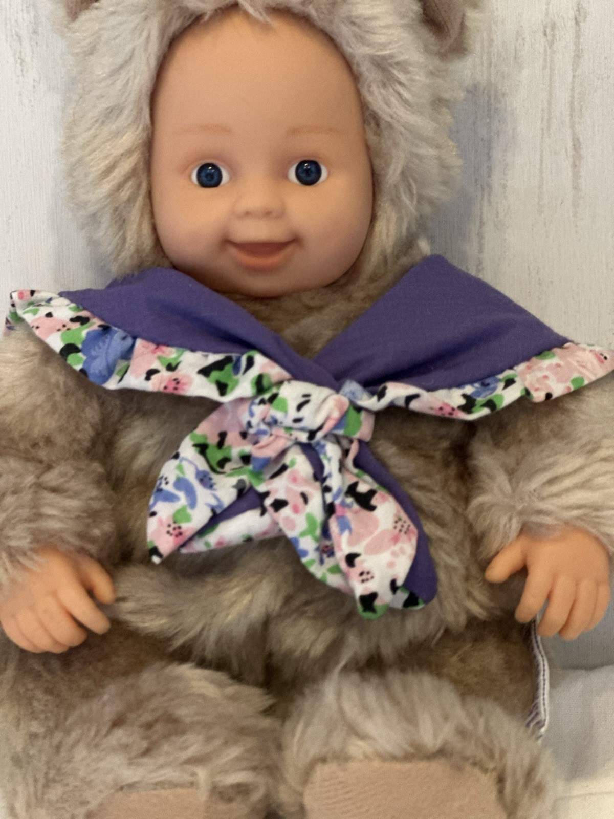 как выглядит Anne Geddes Baby Bear Purple Floral Shawl 8" Tall Clean Nice Hard Face фото