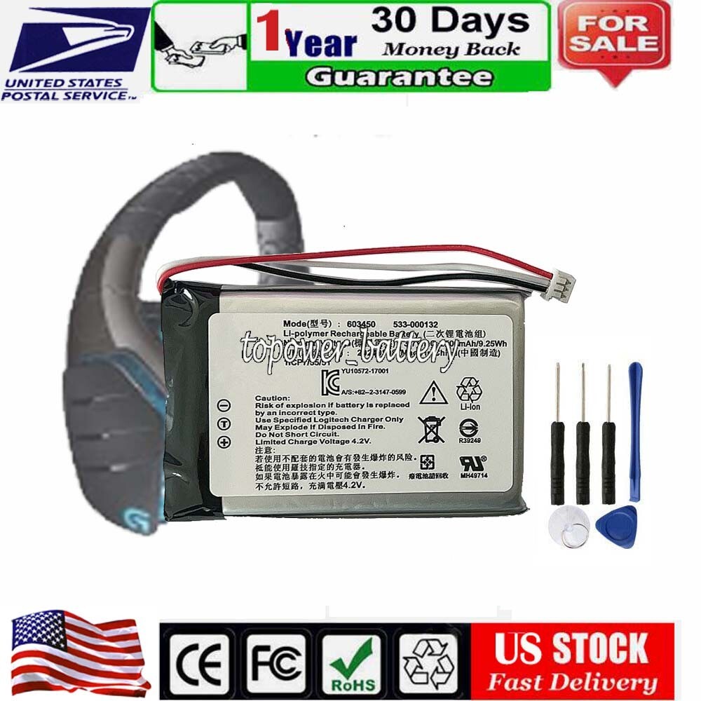 533-000132 Battery For Logitech G533 G933 G935 Aetemis Spectrum headset 2500mah