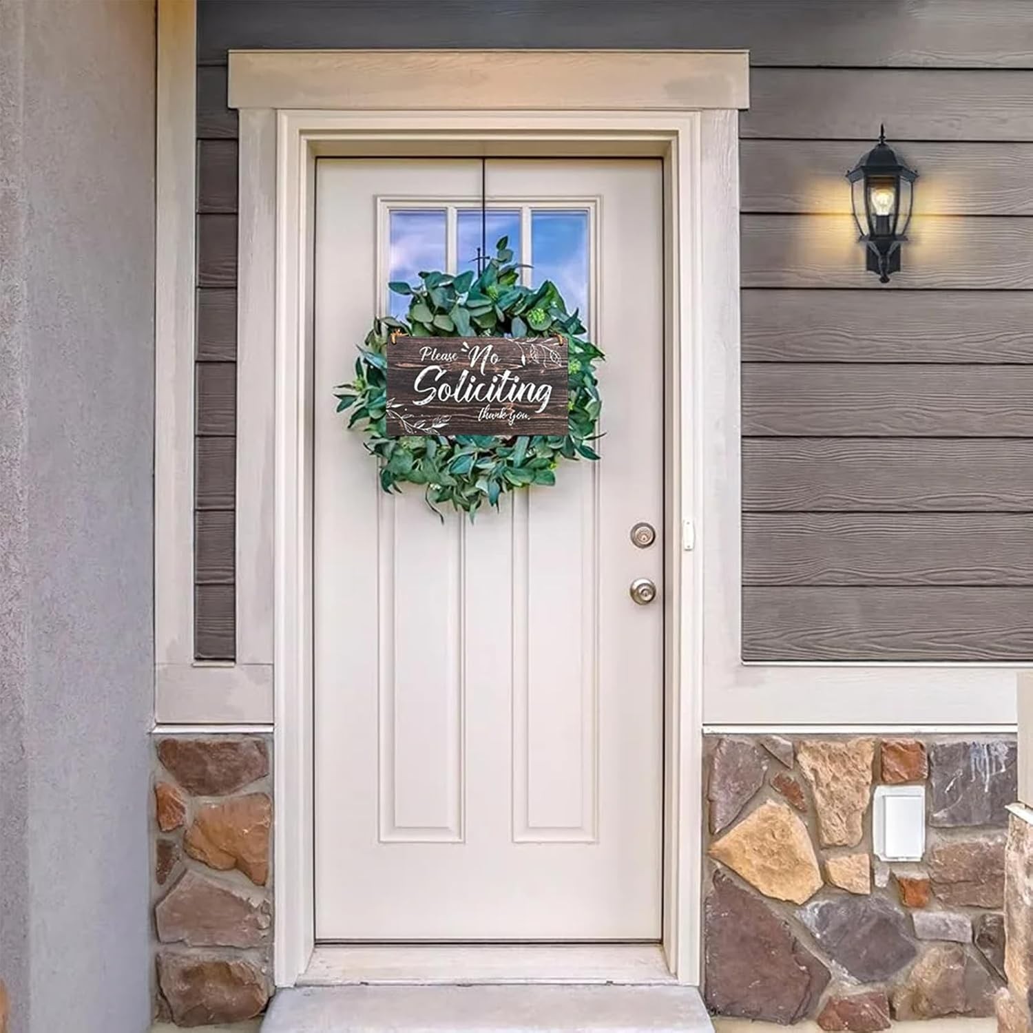 No Soliciting Sign Wooden Front Door Plaque Please No Soliciting Thank You