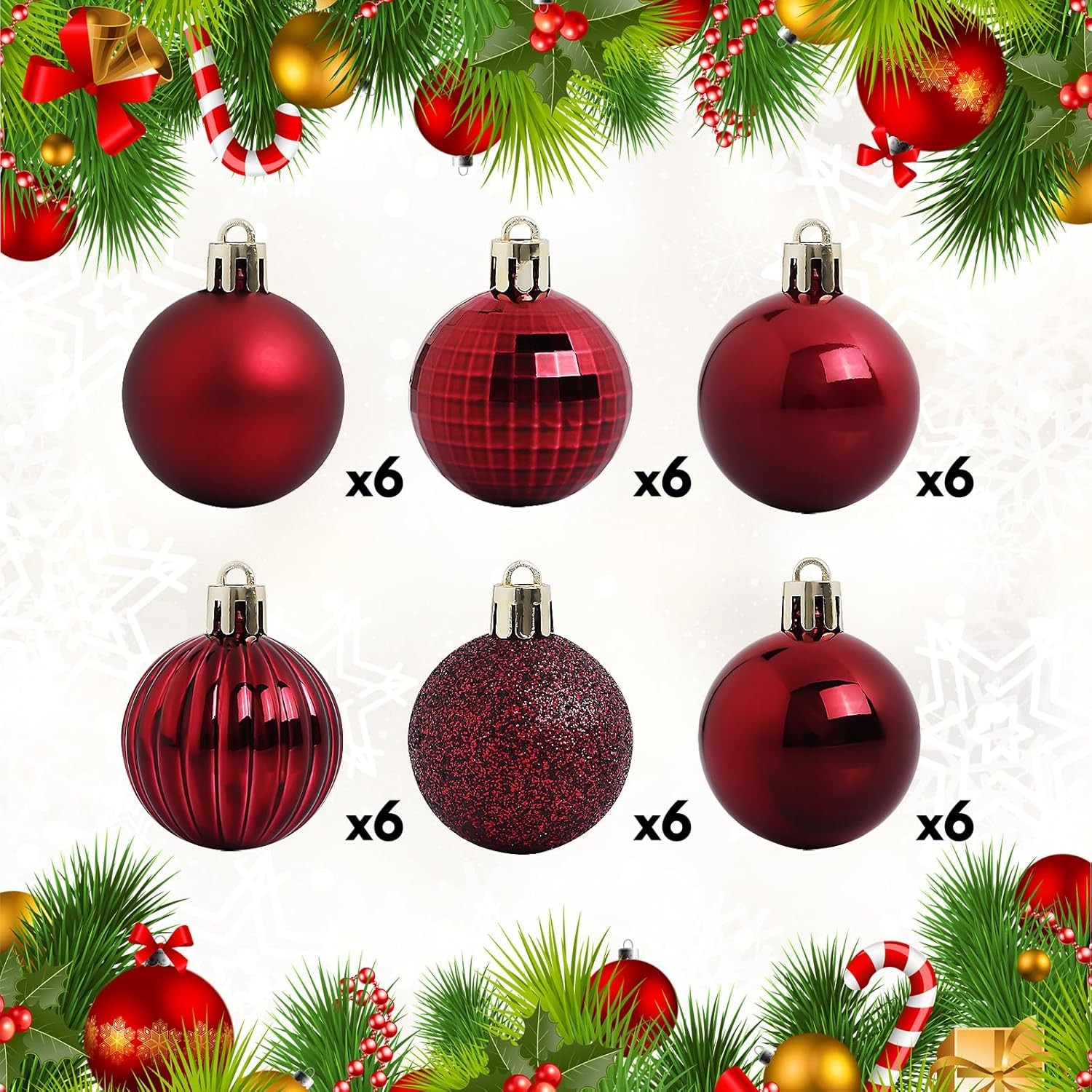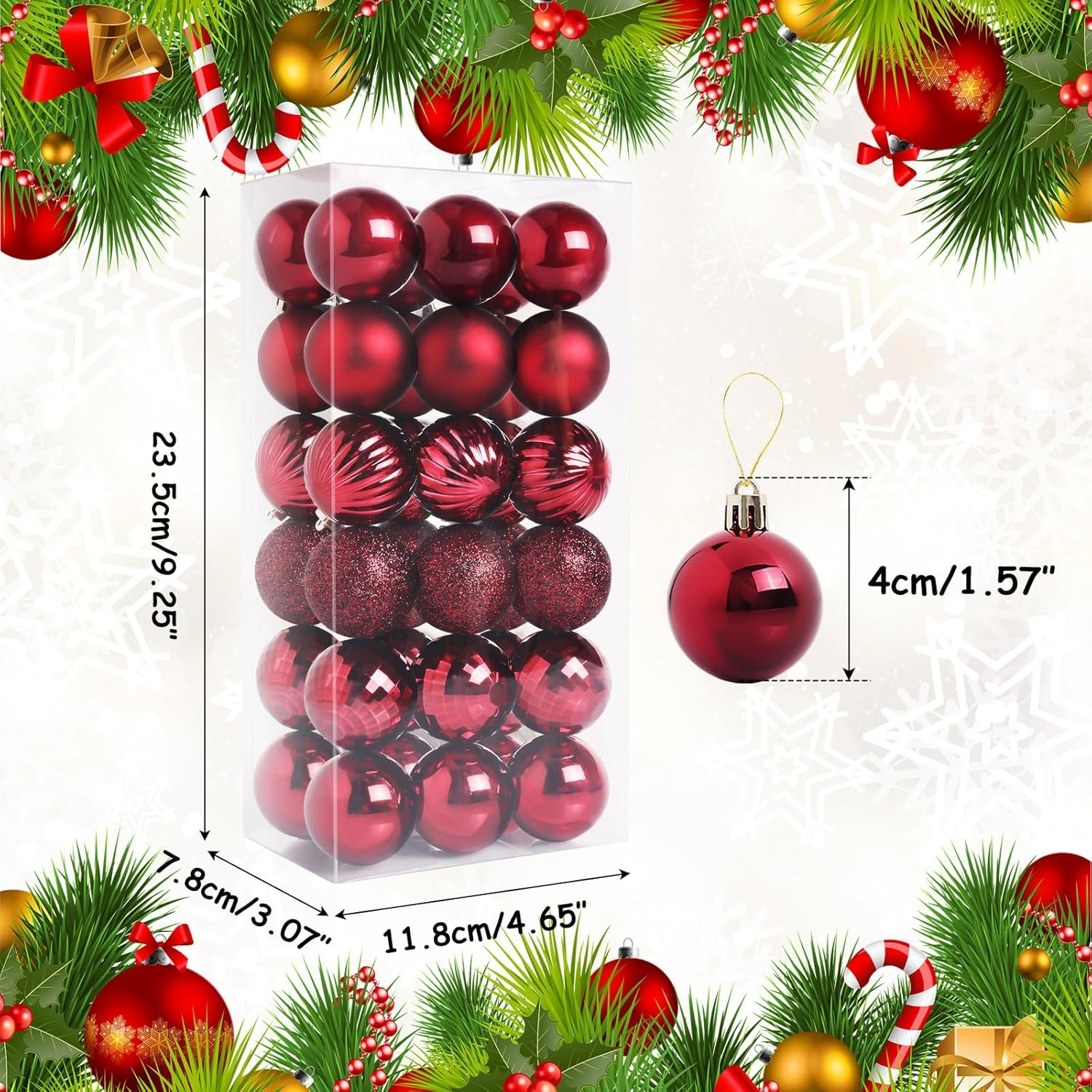 как выглядит 36pcs 1.57" Burgundy Christmas Ball Ornaments Shatterproof Hanging Decor Set фото