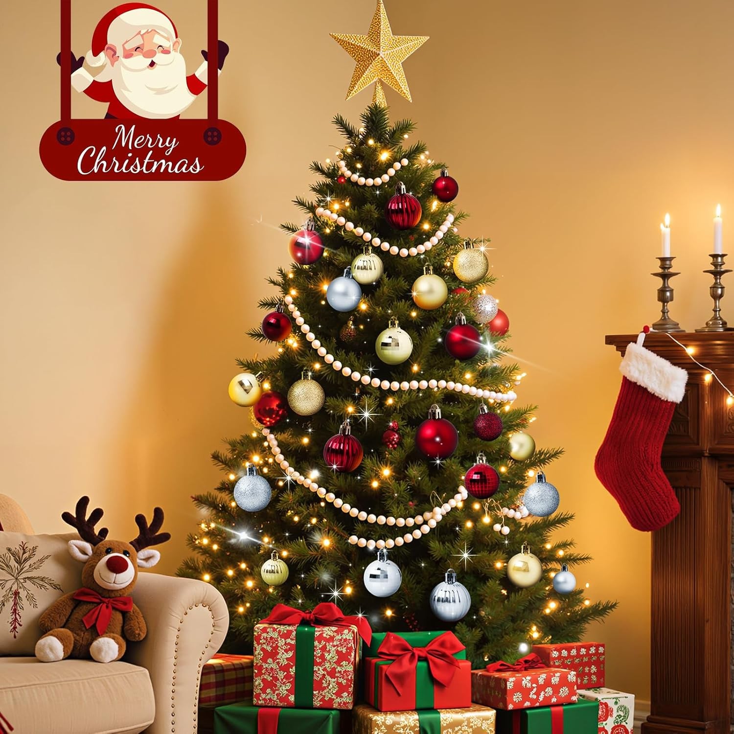 36pcs 1.57 Burgundy Christmas Ball Ornaments Shatterproof Hanging Decor Set